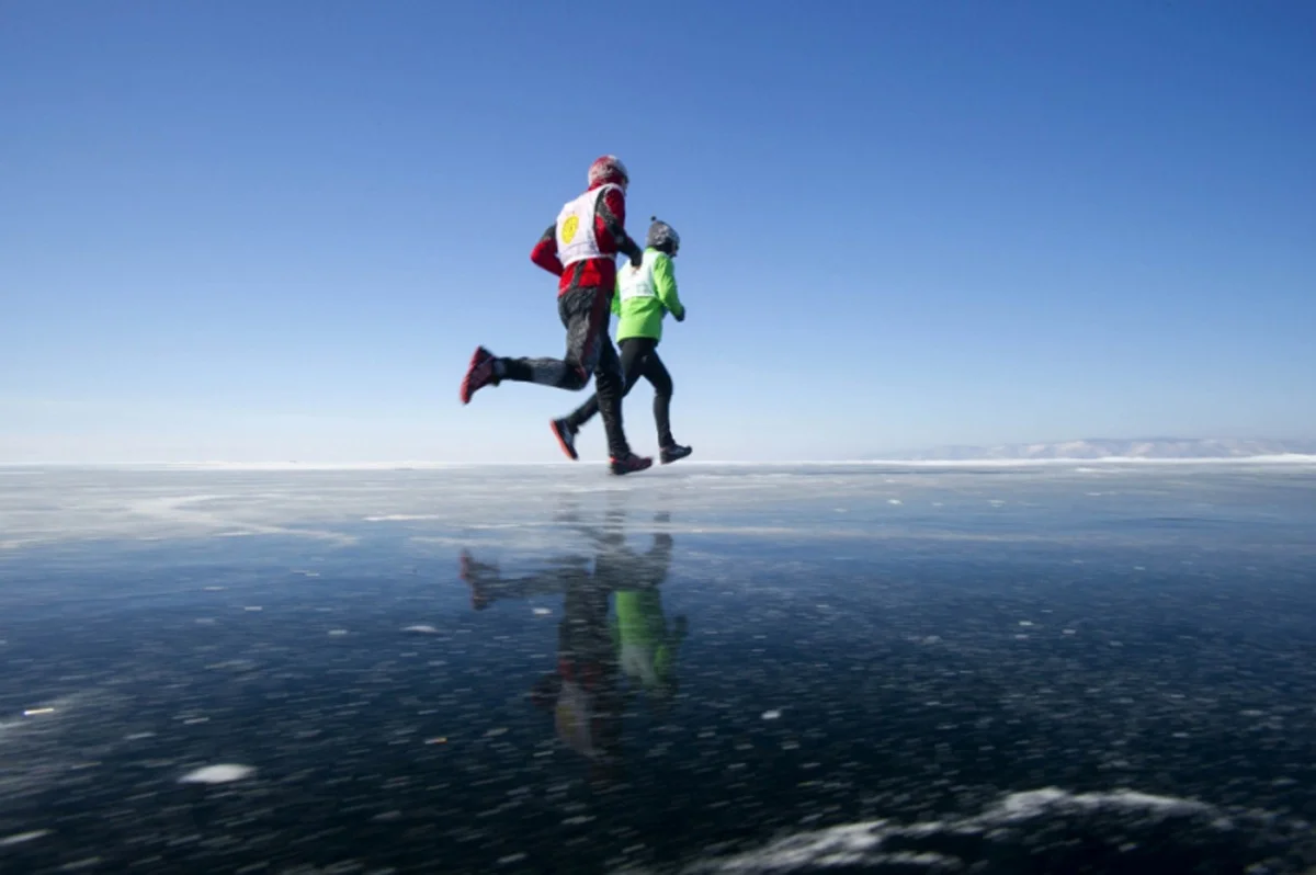 Сейчас-то, после БЛМ, многие начали проводить мероприятия на льду, но если люди бегут, то вдоль берега. Есть только маршрут через Малое море с острова Ольхон, но он совсем небольшой. Если играют в хоккей, то тоже у берега. (Сейчас матч на льду Байкала с участием звезд отечественного хоккея вовсе перенесли на твердь.)