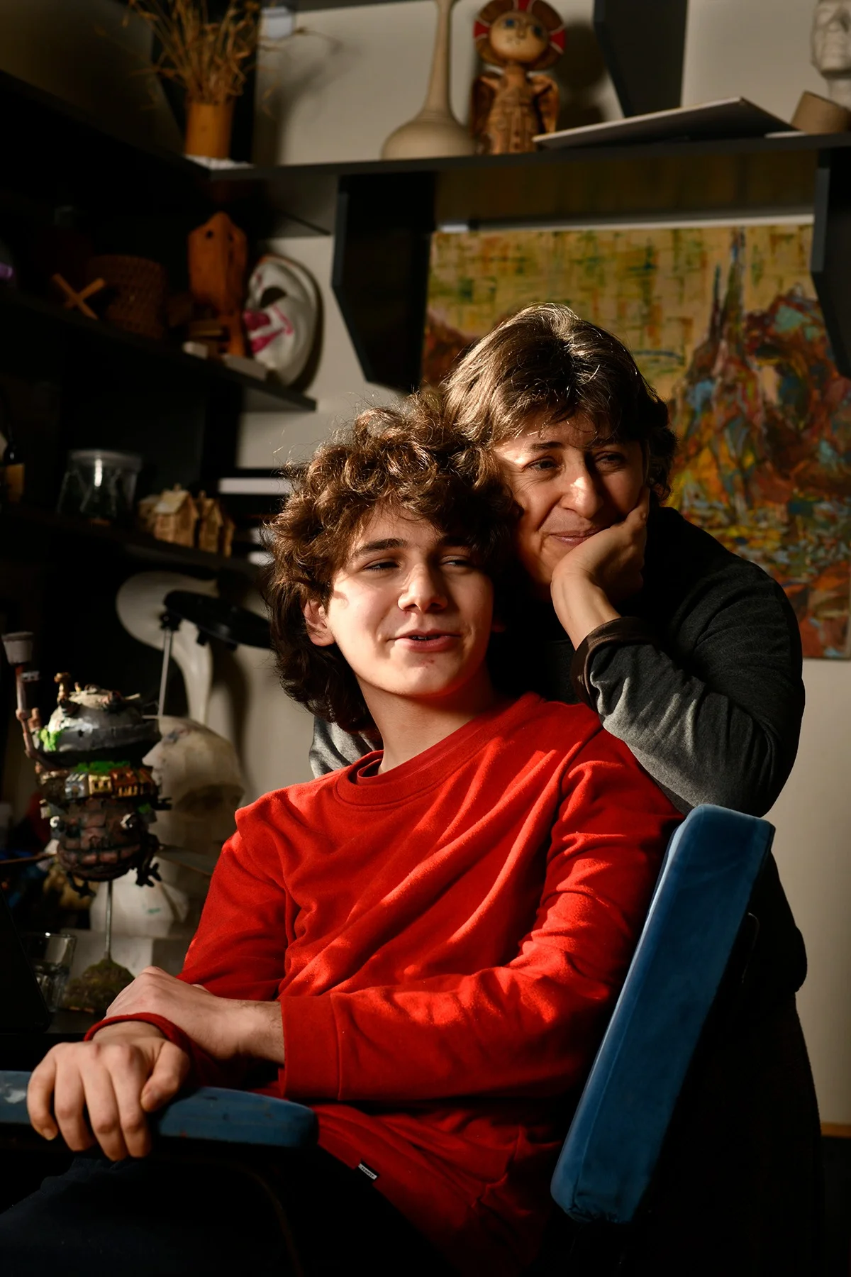 Но к концу 9-го класса я сказал, что не смогу больше ходить в школу. Мы забрали документы из школы, чтобы заниматься искусством дома. Хоть и передвигаюсь я хуже, но по дому все равно стараюсь перемещаться самостоятельно. Каждый день поднимаюсь в свою спальню на втором этаже, а на улице большую часть времени передвигаюсь на коляске.