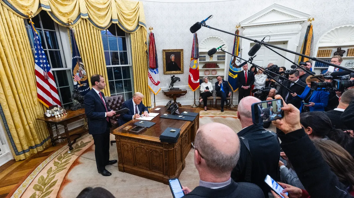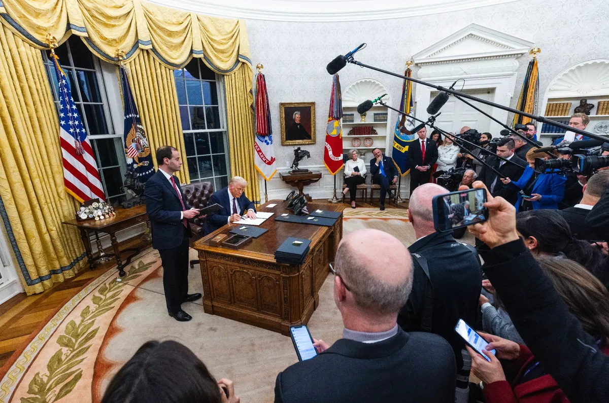 As he signed dozens of executive orders in the Oval Office following his inauguration as the 47th president of the United States on Monday, Donald Trump told reporters that he thought Vladimir Putin “was destroying Russia” by pursuing the war rather than making a peace deal with Ukraine.