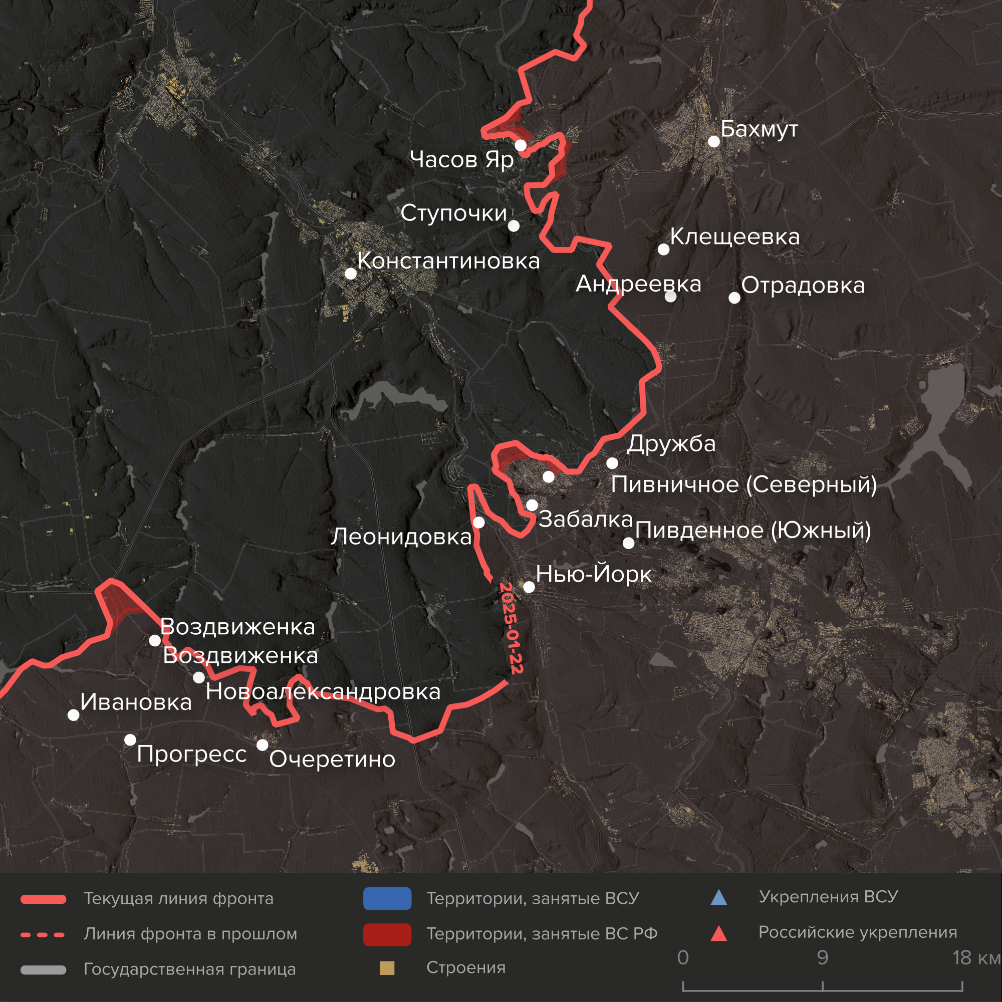 - К новому году российские войска, много месяцев штурмующие города Торецк и Часов Яр, оказались близки к выполнению задач. Бои тут совсем не похожи на наступление на юге Донецкой области. Из Часова Яра, расположенного на доминирующей высоте, ВС РФ пытаются выдавить украинские войска больше года. Уличные бои за Торецкую агломерацию идут с лета 2024-го. Продвижения редко превышают несколько сотен метров в неделю.
