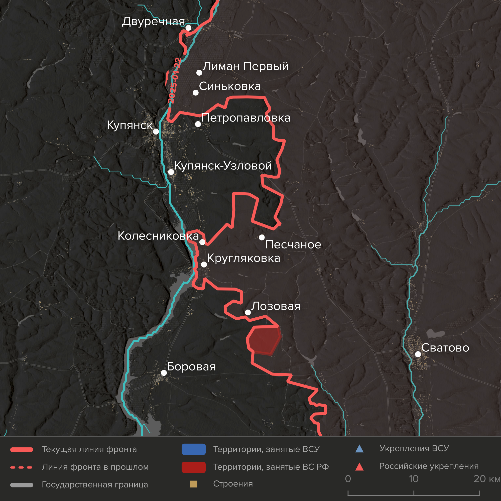 - Российские войска пытаются оттеснить подразделения ВСУ за реку Оскол, пересекающую регион с севера на юг. Осенью они вышли к Осколу к югу от Купянска, но с тех пор не могут расширить прорыв.