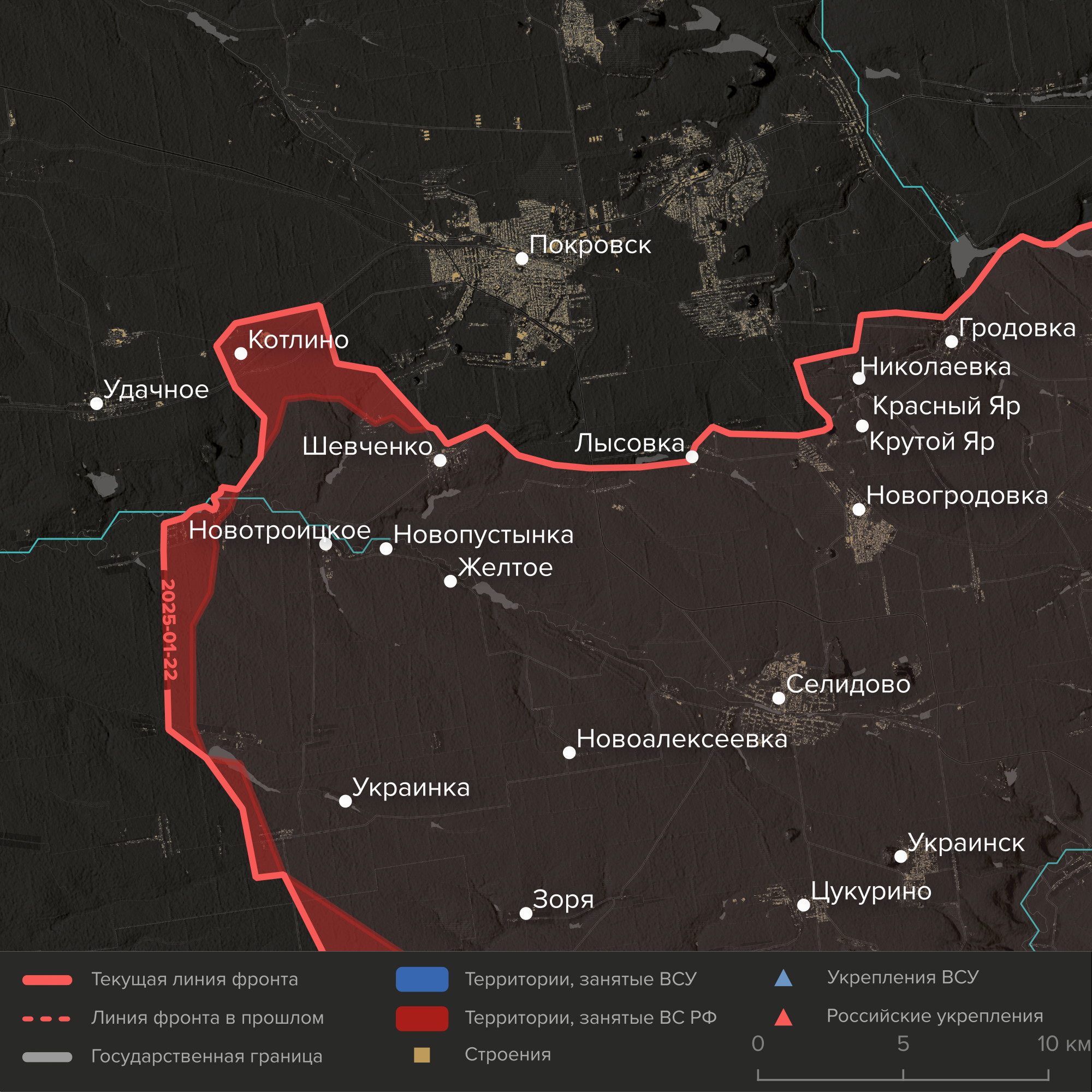 - Сейчас бои идут за комплекс шахт и коксохимических предприятий у поселков Котлино и Удачное в 7–12 километрах к западу от Покровска. Несмотря на то, что промышленные здания и терриконы шахт представляют собой выгодные для обороны рубежи, ВС РФ относительно (по меркам этой войны) быстро продвигаются к цели — трассе Е50 Днепр (город) — Донецк, связывающей Покровск с центральной частью Украины.