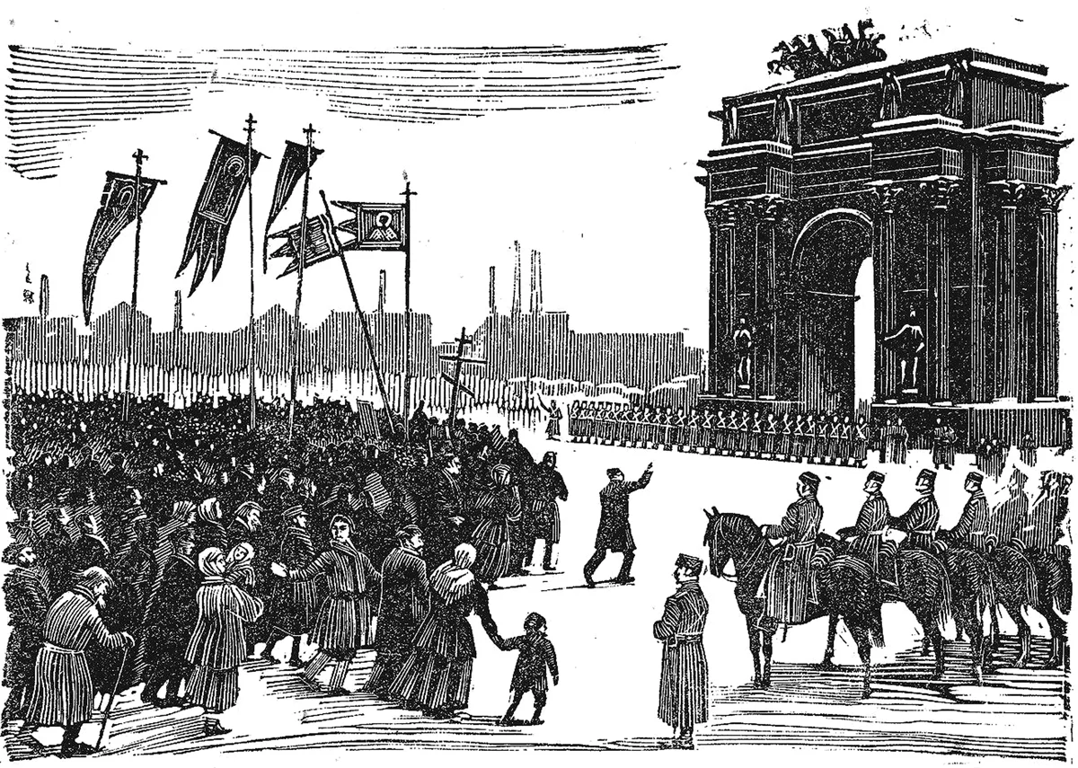 9 января 1905 года в Санкт-Петербурге мирное шествие к Зимнему дворцу, возглавляемое Гапоном, обернулось кровопролитием. Рабочие, собравшиеся в разных районах города, несли иконы, хоругви и портреты царя, надеясь передать петицию Николаю II с изложением своих нужд и требований. Однако еще накануне город был разделен на военные зоны, и войска, заняв ключевые мосты и улицы, получили приказ не пропустить шестие в центр. Попытки демонстрантов пройти через блокпосты, включая Нарвские ворота и Троицкий мост, встретили вооруженное сопротивление. Солдаты открывали огонь после первых предупреждений, что вызвало панику и хаос, и привело к жертвам.