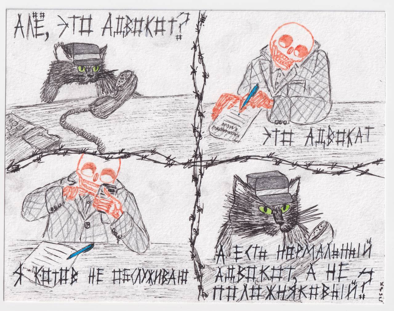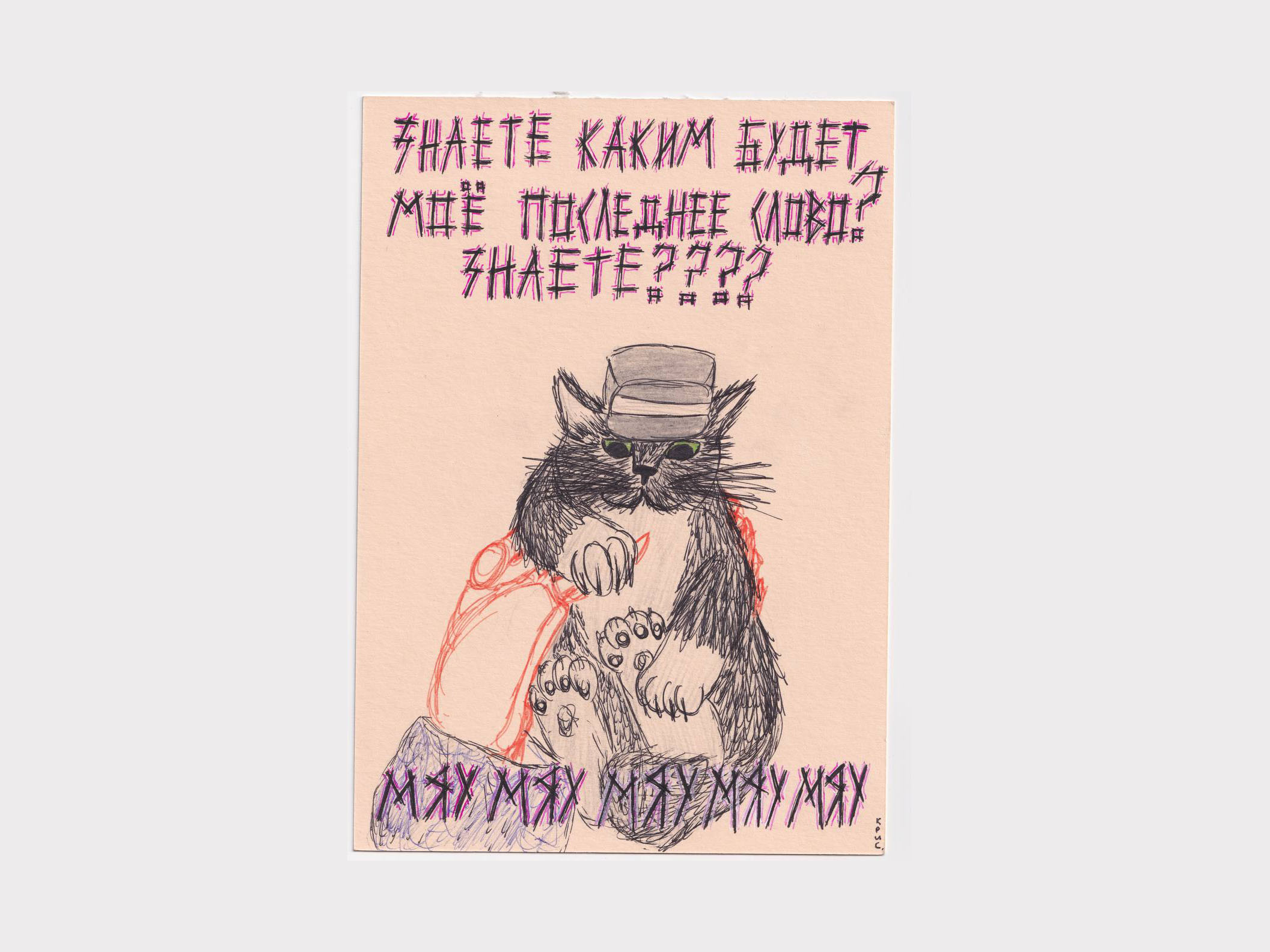 — Я так понимаю, [сотруднкики колонии] просто решили противодействовать тому, чтобы меня встречали. Во время зарядки ко мне прибежал оперативный сотрудник и сказал: «Всё, собирайся». Весь отряд отреагировал: «Всё понятно, Пашу сейчас либо задержат, либо просто отпустят». Сотрудник стоял над душой и ждал, чтобы я все вещи собрал. Потом он провел шмон, забрал всякие мои творческие штуки: сувенирную металлическую розу, матрешки, которые я сам раскрашивал скелетиками-зеками, и 150–200 рисунков котов. Мне сказали, что люди в погонах и в кабинетах не хотят видеть этих котов на свободе, поэтому отобрали.