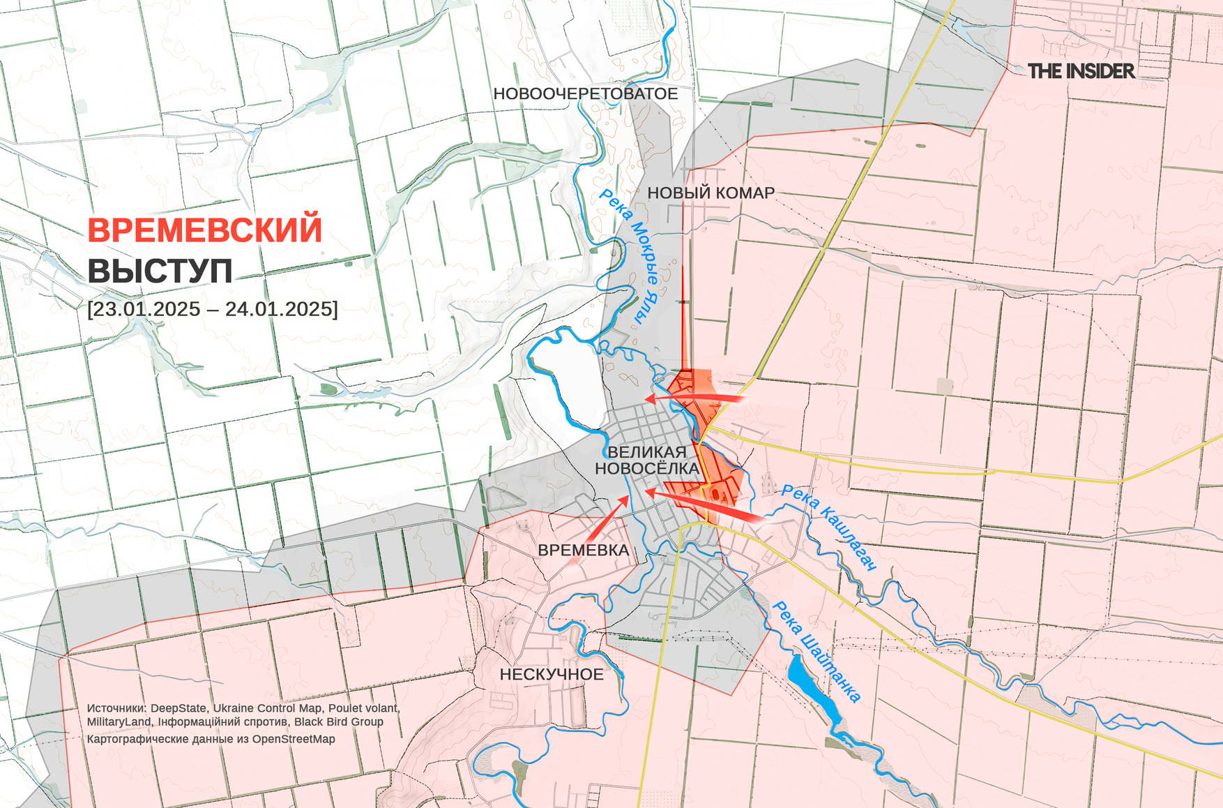На Времевском выступе российские штурмовики вошли в центр Великой Новосёлки.