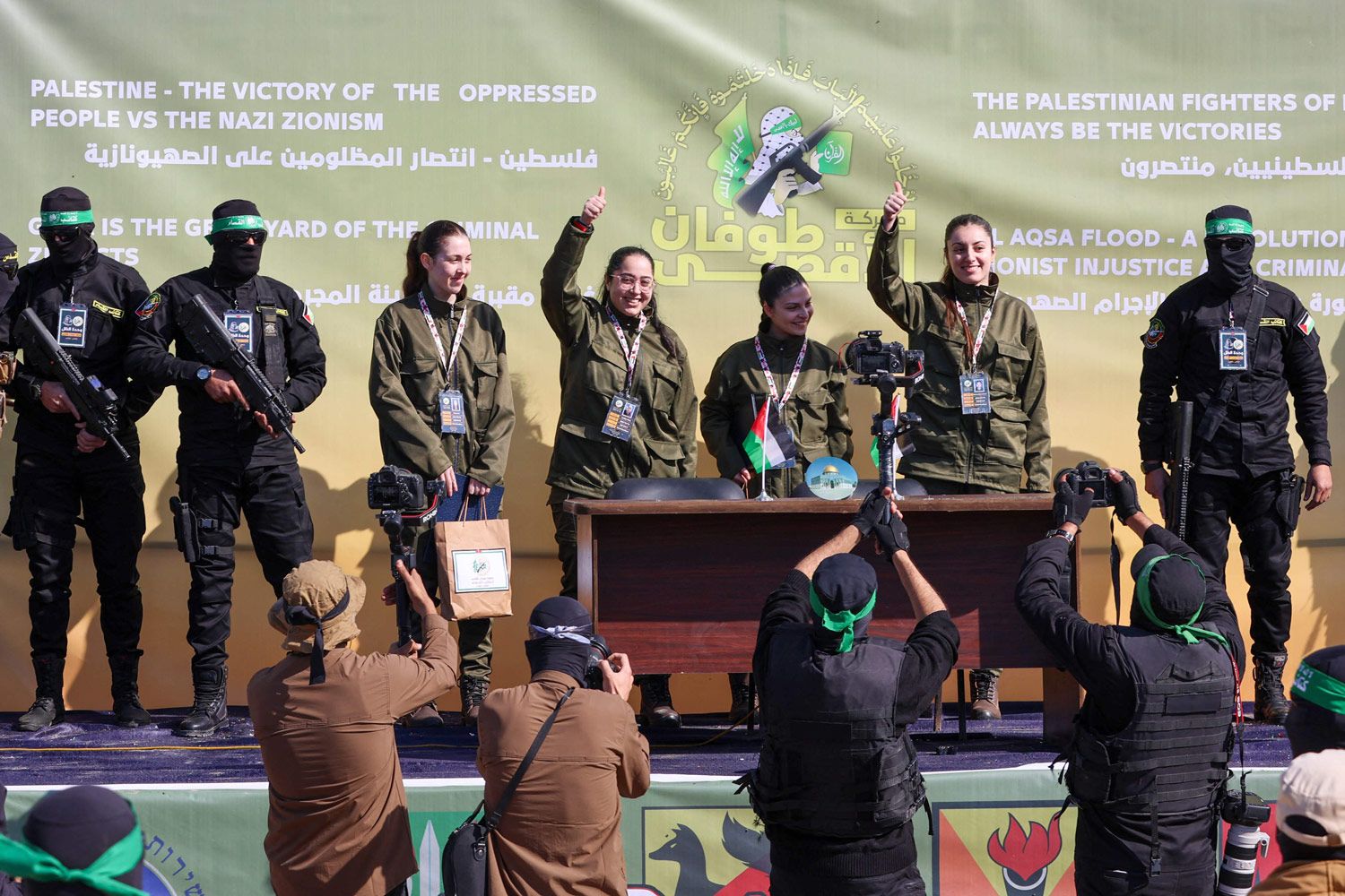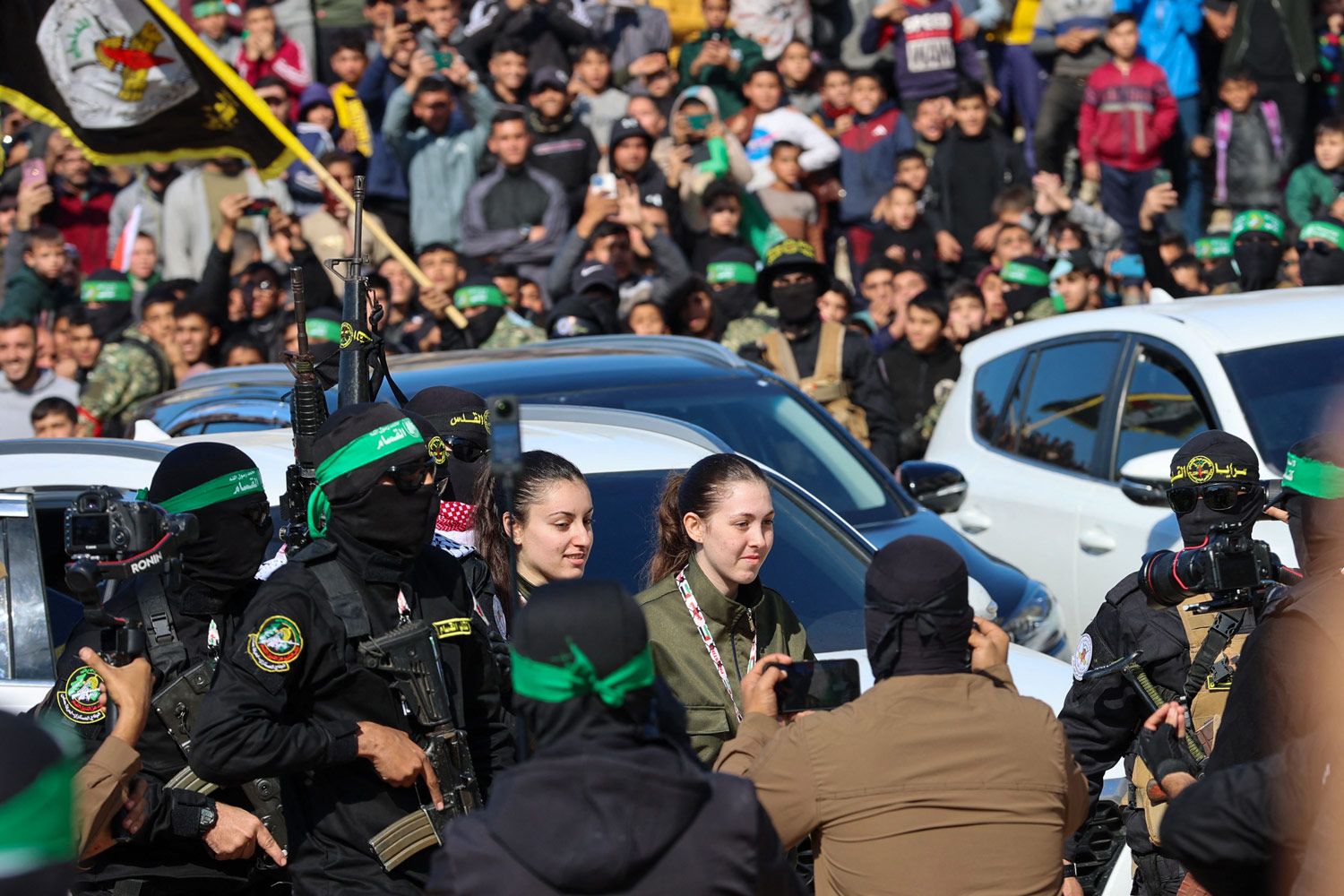 На площади Палестины в городе Газа движение ХАМАС передало представителям Красного Креста четырех израильских заложниц. Это Карина Ариев (20 лет), Даниэла Гильбоа (20 лет), Наама Леви (20 лет) и Лири Альбаг (19 лет). Все они 7 октября 2023 года, в день нападения ХАМАС на Израиль, служили в Армии обороны Израиля дозорными, то есть наблюдали за границей сектора Газа при помощи камер и прочих средств слежения. При освобождении девушки были одеты в военную форму.