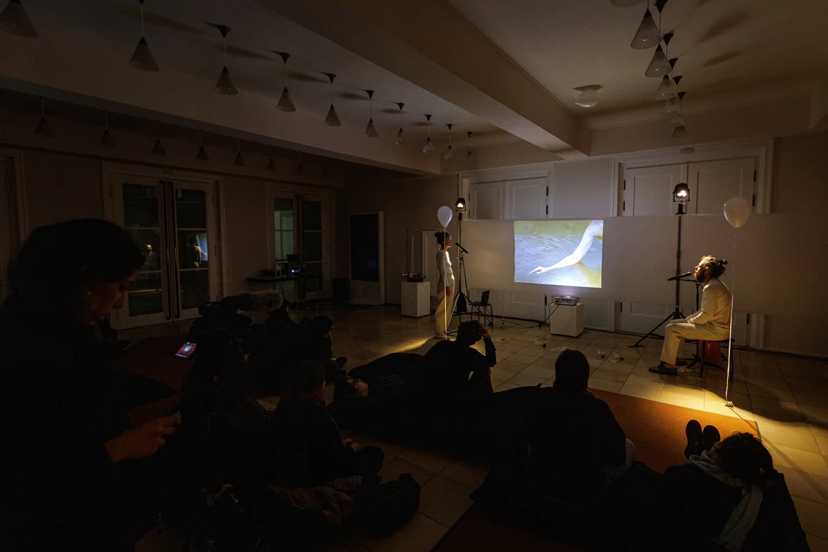 Самая молодая участница двухдневного марафона в Хеллерау — Маша Сапижак — показала перформанс, сделанный вскоре после отъезда (весной 2022-го девушка отсидела 2 недели после задержания на антивоенном митинге).