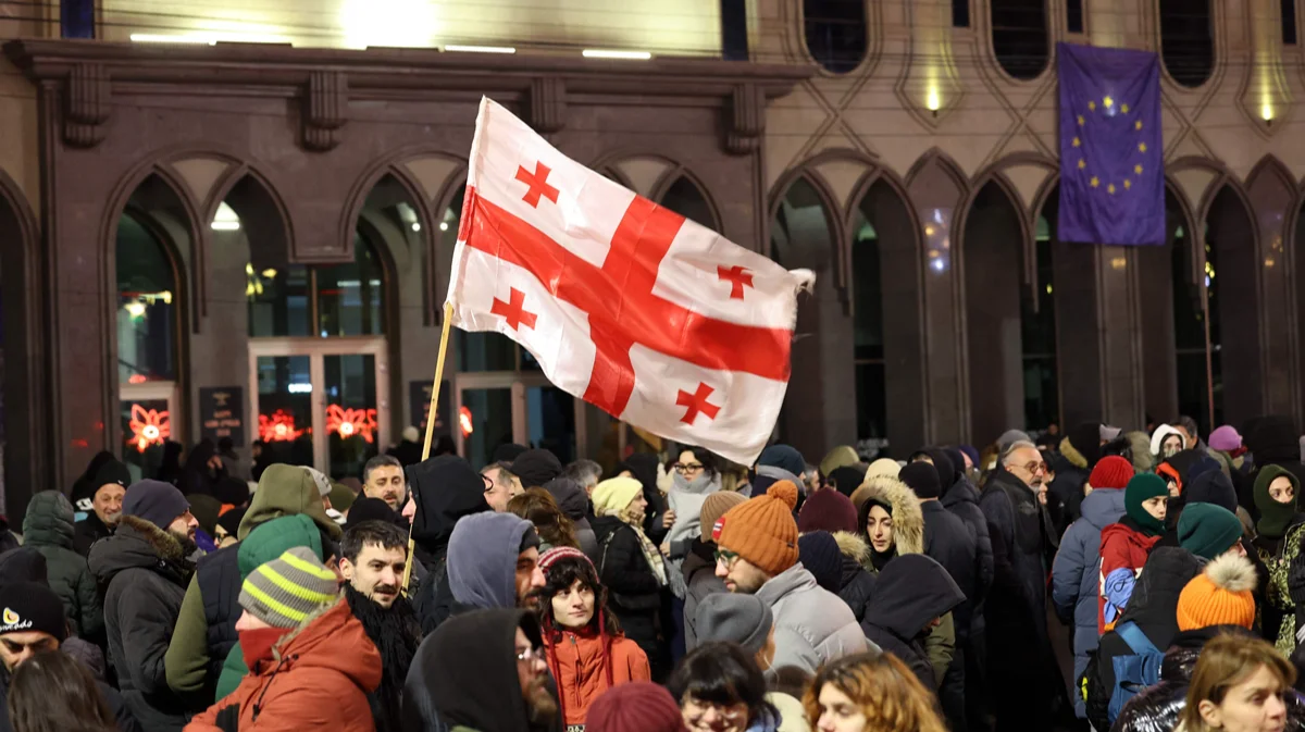 Антиправительственный митинг в центре Тбилиси, 17 декабря 2024 года. Фото: Giorgi Arjevanidze / AFP / Scanpix / LETA