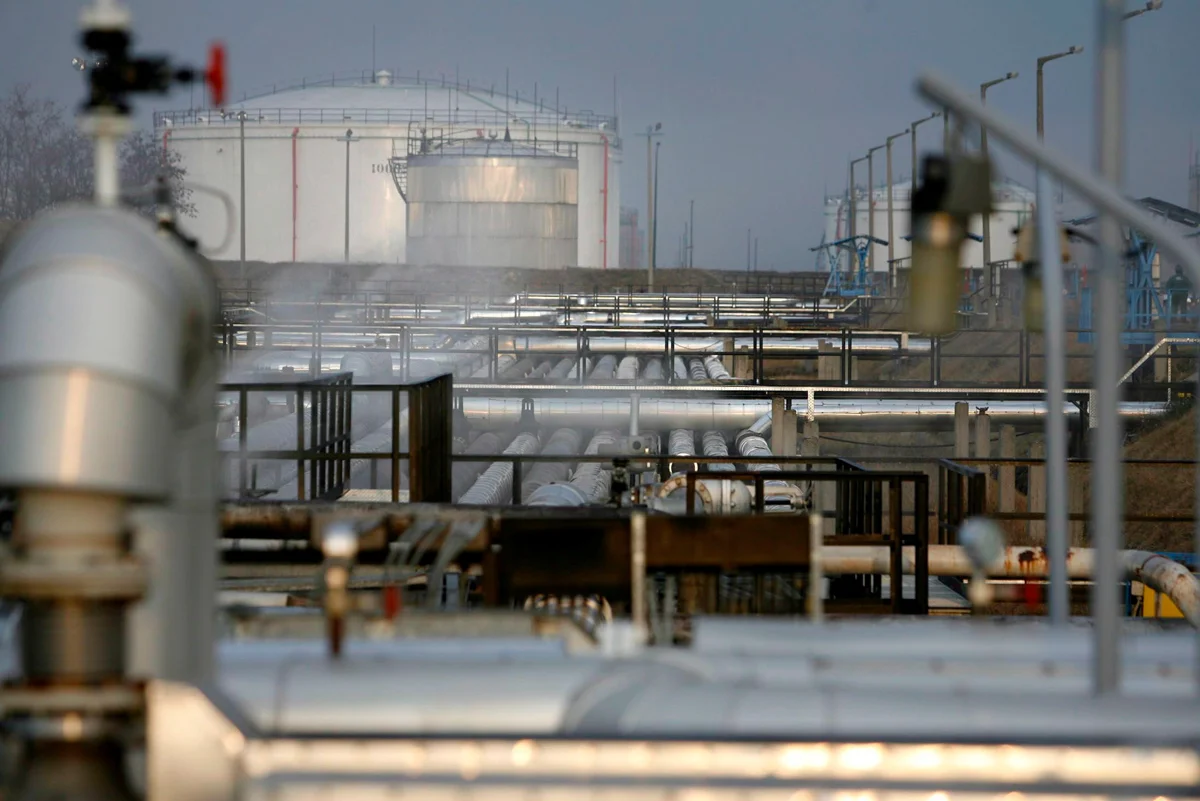 Часть приёмной станции нефтепровода «Дружба» на нефтеперерабатывающем заводе Сазхаломбатта, Венгрия, 9 января 2007 года. Фото: Zsolt Szigetvary / EPA