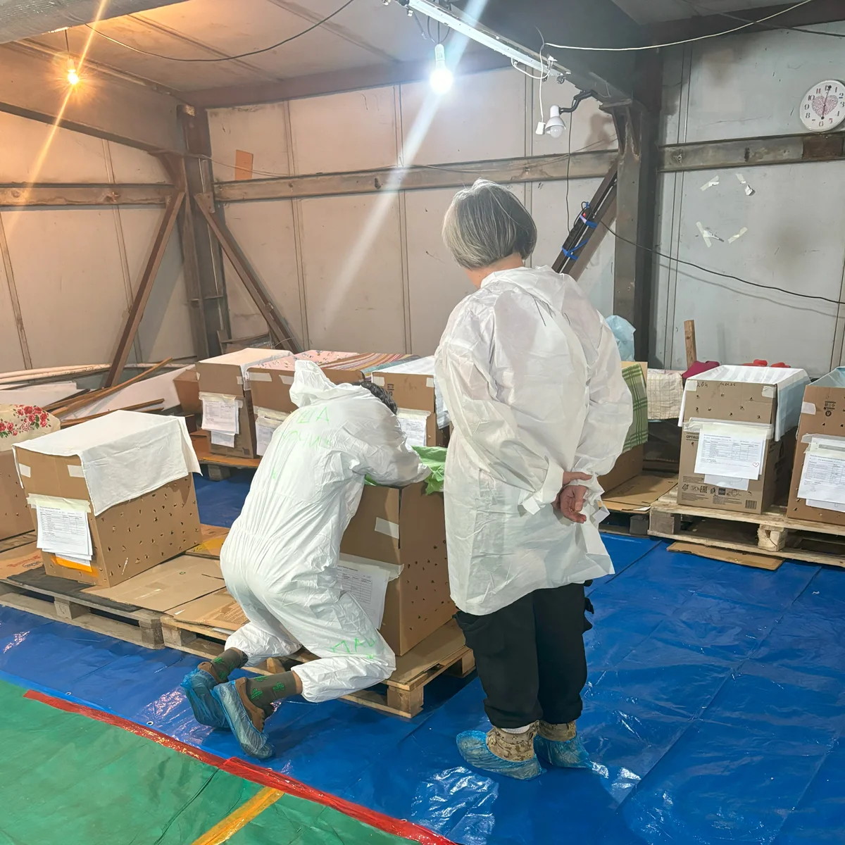 Сажусь за импровизированный стол. Вокруг коробки с надписями и стопки защитных костюмов со штрихкодами Wildberries, китайскими вкладышами-сертификатами и надписями For COVID-19 Pandemic Period Use Only. Первое задание — экипировать волонтерку, которая идет в стационар к уже отмытым птицам. Выдаю комбинезон, доходящие до колена бахилы. Повторяю напутствие Юли: «Удачного дежурства!» Тут же подходит другая волонтерка в шапке «Береги Камчатку»: нужно два рулона туалетной бумаги. Выдаю, поздравляет: «Первые две ачивки есть!»