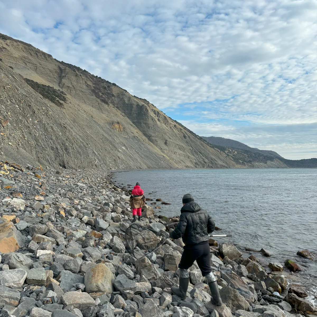 Перед нами открываются красоты заповедника — гигантские горы из слоев сланца, которые выглядят как нагромождение очень старой древесины. Водопад, ведущий прямо к морю. Вместо валунов — круглые камни, идти по ним легче. Нет только птиц. Наталья предполагает, что они не подплывают к берегу из-за неспокойного моря. Пройдя около шести километров, которые из-за дороги ощущаются как десять, поворачиваем назад. В ногах гудит, ступни болят, но я стараюсь не отставать. По пути находим двух погибших чомг — одна обглоданная до скелета. Хотя мертвых птиц обычно тоже привозят в штаб для вскрытия, забирать их не решаемся: смотрители заповедника могут остановить и обвинить в браконьерстве.