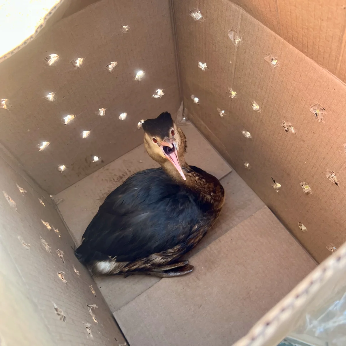 Я остаюсь на месте, а Роман бесшумно спрыгивает с камней к воде и начинает медленно идти к птице. Карина опускается на живот и по-пластунски ползет по насыпи. Через несколько секунд она резко включает мощный фонарик, высвечивая лучом чомгу. Та на мгновение дезориентируется в пространстве, не понимая, куда плыть или бежать, — в этот момент Роман делает рывок вперед и накрывает птицу сачком. Я быстро склеиваю коробку, заполняю ветошью. Наталья берет чомгу и аккуратно укладывает. Запечатывая временную клетку, Роман ласково убаюкивает пострадавшую: «Не бойся, не бойся, мы тебя помоем. Рыбкой накормим. Спасем».