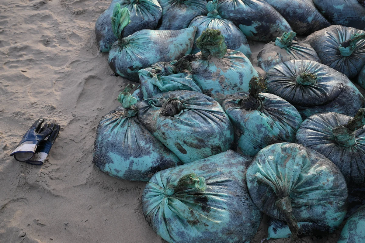На пляжах работа более монотонная. Штабы здесь чаще всего располагаются в палатках. Там выдают защитные костюмы, очки, перчатки. Волонтеры разбиваются по парам: один держит мешок, другой собирает лопатой загрязненный песок. Респираторов на всех не хватает — едкий запах мазута проникает в легкие, начинает болеть голова, слезятся глаза, опухает лицо. Если повезет, мешки вывозят на грузовиках на полигон. Если нет — они застаиваются, после чего мазут начинает вытекать наружу. А если ночью море будет неспокойным, то выплюнет на берег новые килограммы нефтепродуктов, и придется начинать заново.