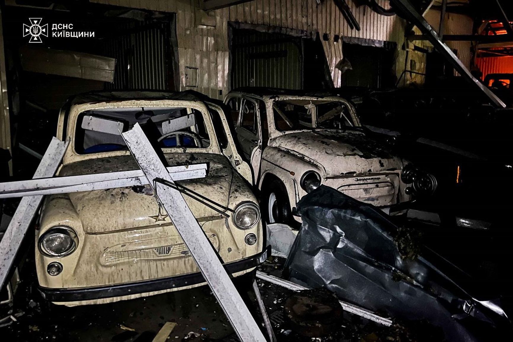 Последствия падения БПЛА на музей ретроавтомобилей под Киевом