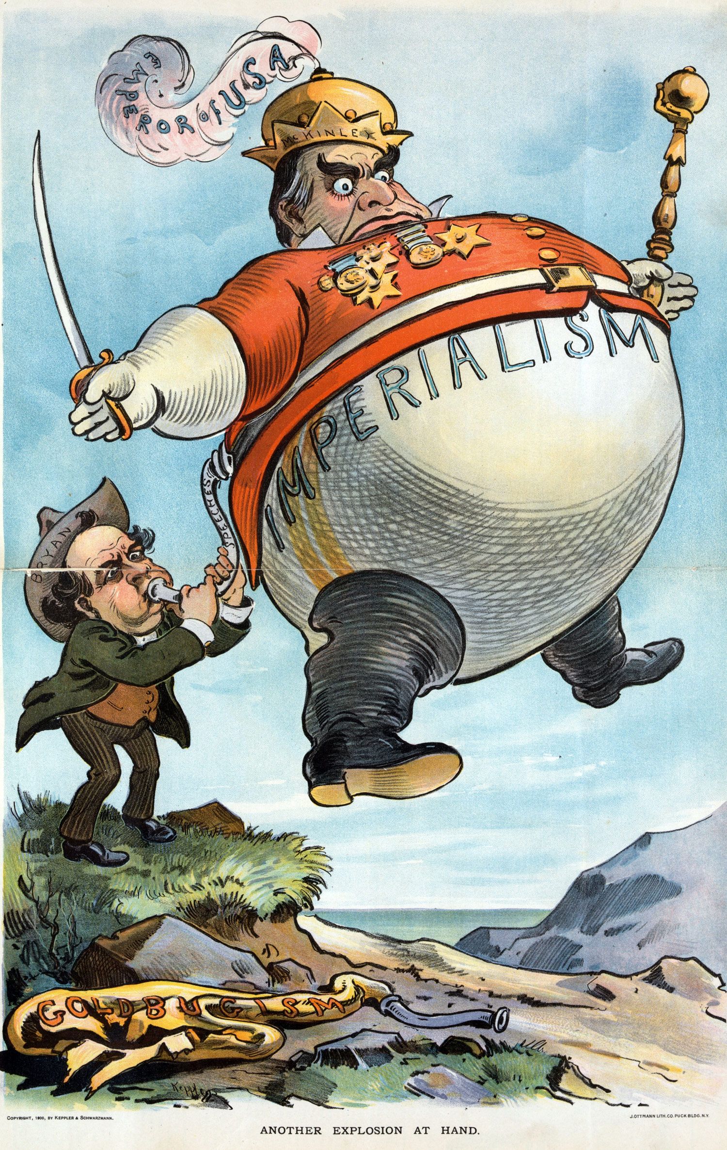 Речь идет о Филиппинах, Гуаме и Пуэрто-Рико, которые стали колониями США по итогам испано-американской войны, продлившейся 110 дней. По условиям мирного договора Испания также отказалась от контроля над Кубой. Кроме того, США использовали конфликт с Испанией как предлог для аннексии Гавайев, которые до этого формально оставались независимыми. Сторонники аннексии утверждали, что Гавайи жизненно важны для американской экономики и что если их не захватят США, это сделают другие страны.
