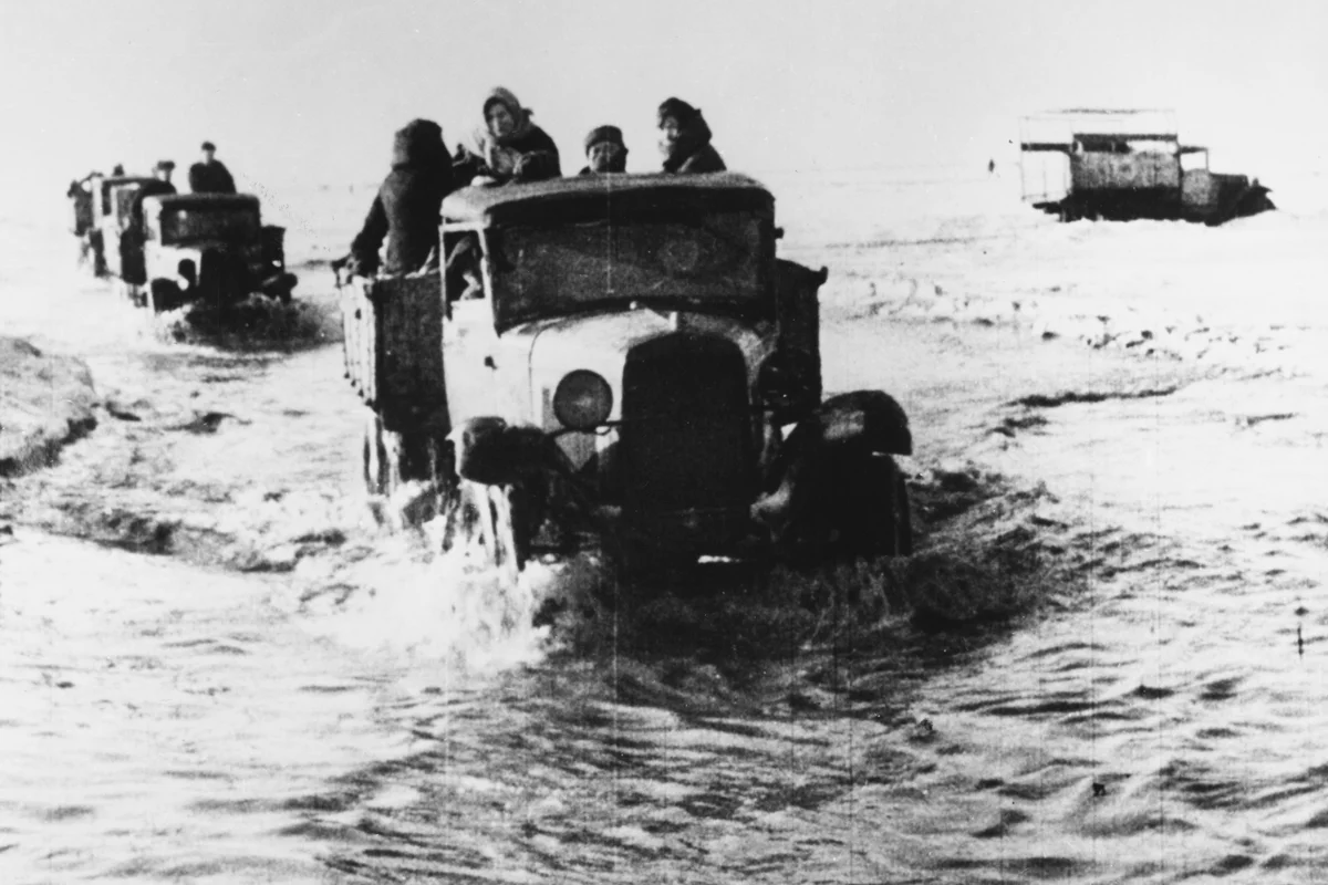 В музее посетителям показывали документальный фильм об этой страшной зиме, о «Дороге жизни» по Ладожскому озеру.