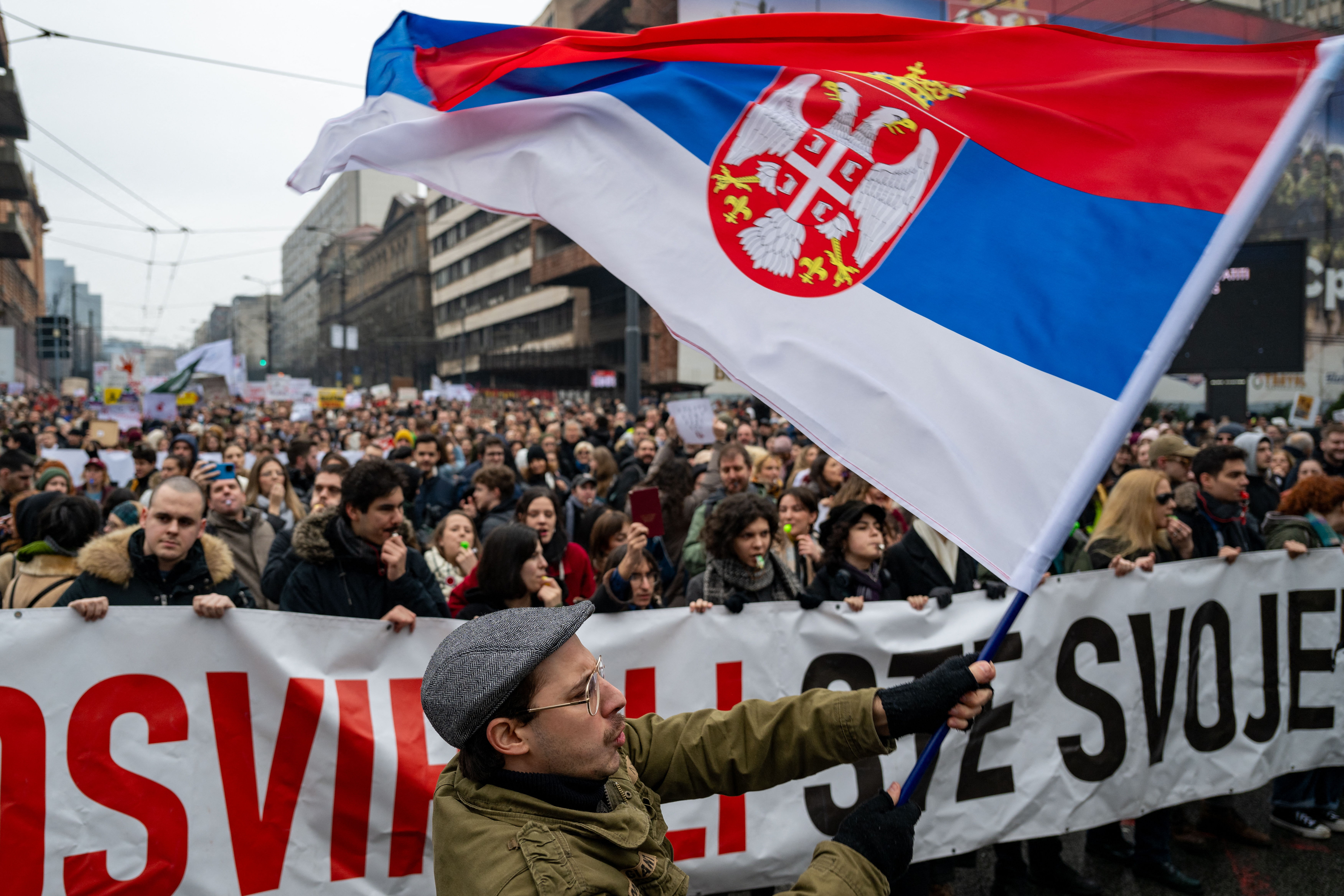 Вечером в воскресенье, 26 января, по всему Белграду грохотало: все, кто мог, вышли на балконы или высунулись в окна, чтобы бить в кастрюли и сковородки. Эта символическая канонада в поддержку сначала студенческих, а к концу их третьего месяца и всеобщих протестов против действующей власти оказалась провозвестником её первой принципиальной уступки: не прошло и двух суток, как подал в отставку премьер страны Милош Вучевич, который не пробыл на своём посту и года. Будучи одновременно лидером правящей Сербской прогрессивной партии, он взял на себя тем самым ответственность и за результаты деятельности главной политической силы страны, находящейся у власти уже 13 лет. Теперь, в соответствии с законодательством Сербии, вместе с главой кабинета в отставку должен уйти весь его состав, а президент обязан предложить кандидата на пост премьера. Если новое правительство не будет утверждено Народной скупщиной в течение тридцати дней, в стране состоятся новые всеобщие выборы.