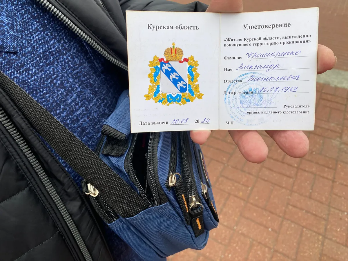 Александр Анатольевич показывает мне тоненькую красную книжечку — «Удостоверение». Внутри написано: «Удостоверение жителя Курской области, вынужденно покинувшего территорию проживания». Спрашиваю: «А что оно дает?»