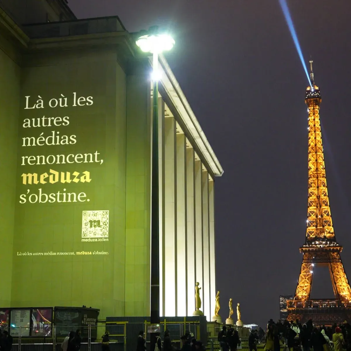 Издание «Медуза» анонсировало свою рекламу в европейских городах в середине января. По словам журналистов, берлинское агентство Lure согласилось бесплатно разработать рекламную компанию для редакции. В частности проекции, посвященные «Медузе», были показаны на фоне берлинской телебашни и Эйфелевой башни в Париже.