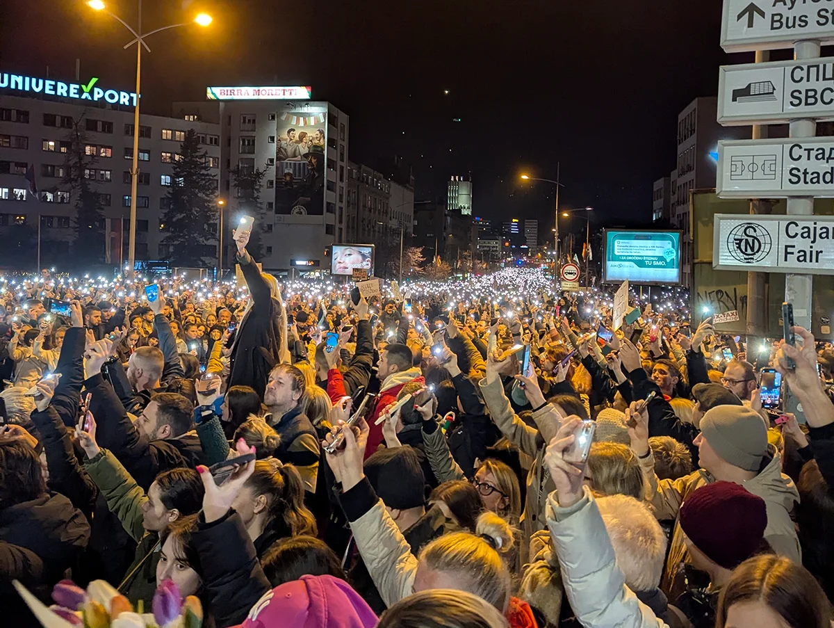 Акция протеста в Нови-Саде, Сербия, 1 февраля 2025 года. Фото: Evgenii Petukhov / «Новая Газета Европа»