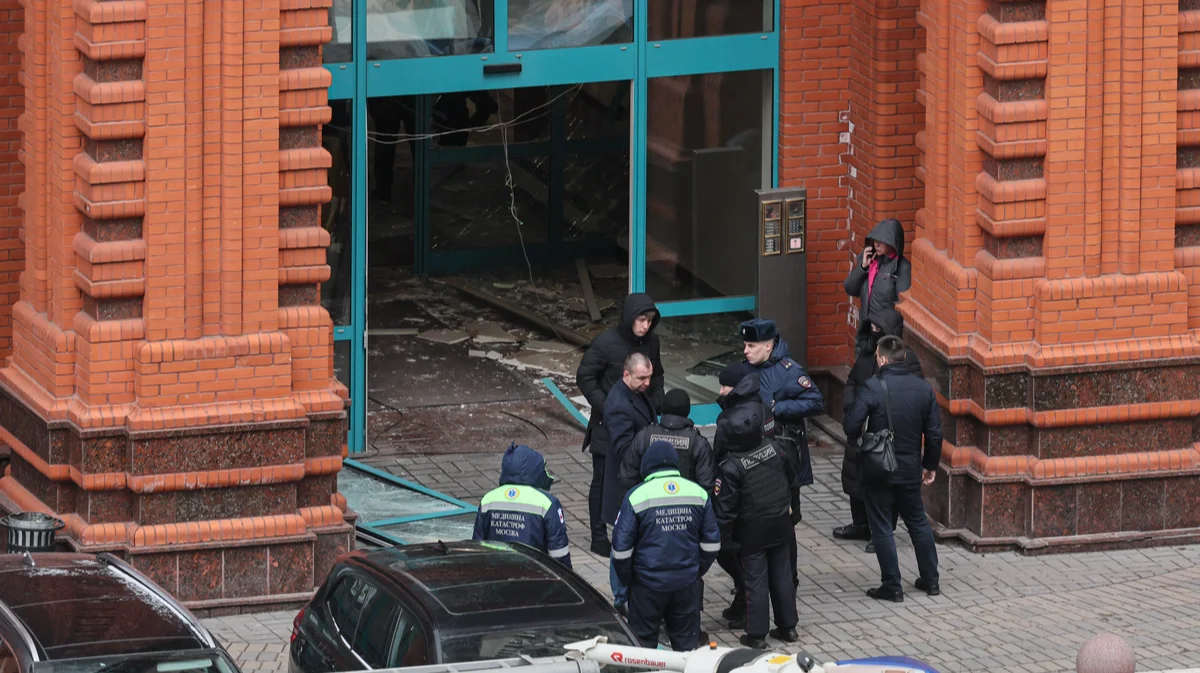 Сотрудники экстренных служб у входа в жилой комплекс «Алые паруса» в Москве, 3 февраля 2025 года. Фото: Юрий Кочетков / EPA