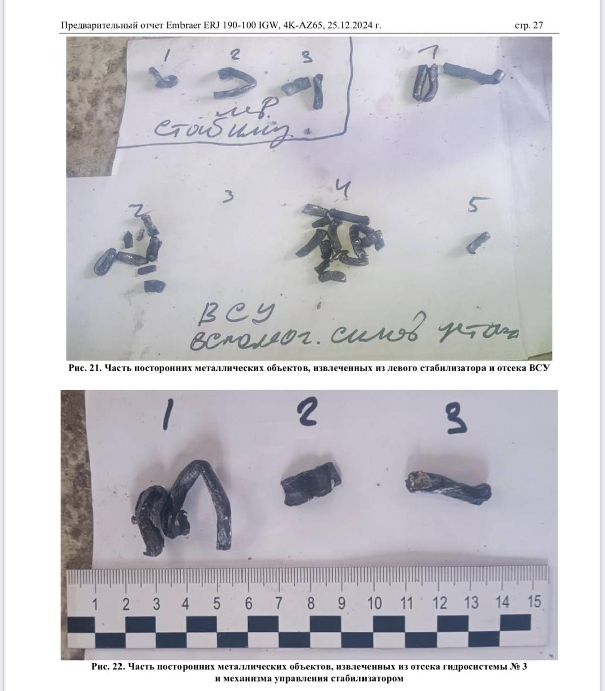 Эти осколки попали в самолет извне до столкновения судна с землей. Их извлекли и направили на дополнительную экспертизу. Власти Казахстана пока не делают никаких выводов из полученных данных.