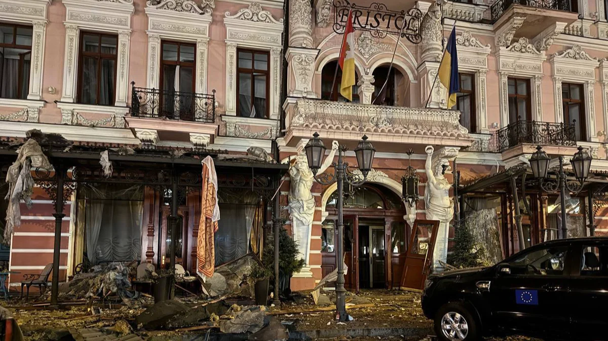Гостиница «Бристоль» после удара, 31 января 2025 года. Фото: телеграм-канал городского головы Одессы Геннадия Труханова