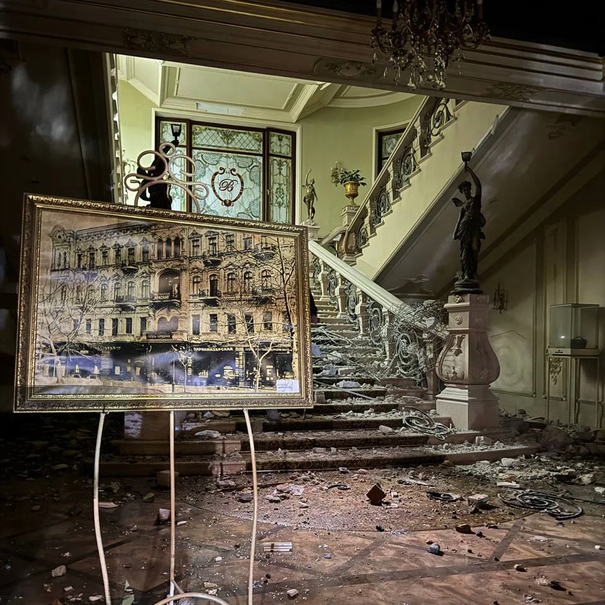 — Прошелся там рядом, где разрешено, на следующий день. Коммунальные службы работали, расчищали улицу, забивали окна деревянными щитами. То, что видел, удручает очень… Сразу после ударов появилось много фото покалеченного «Бристоля». А вот о филармонии, что напротив отеля, говорят меньше. И зря! По первому этажу пронеслась ударная волна. Рядом ступени, что ведут на второй этаж, в фойе. По ступеням тоже прилетело, вынесло двери в Камерный зал…