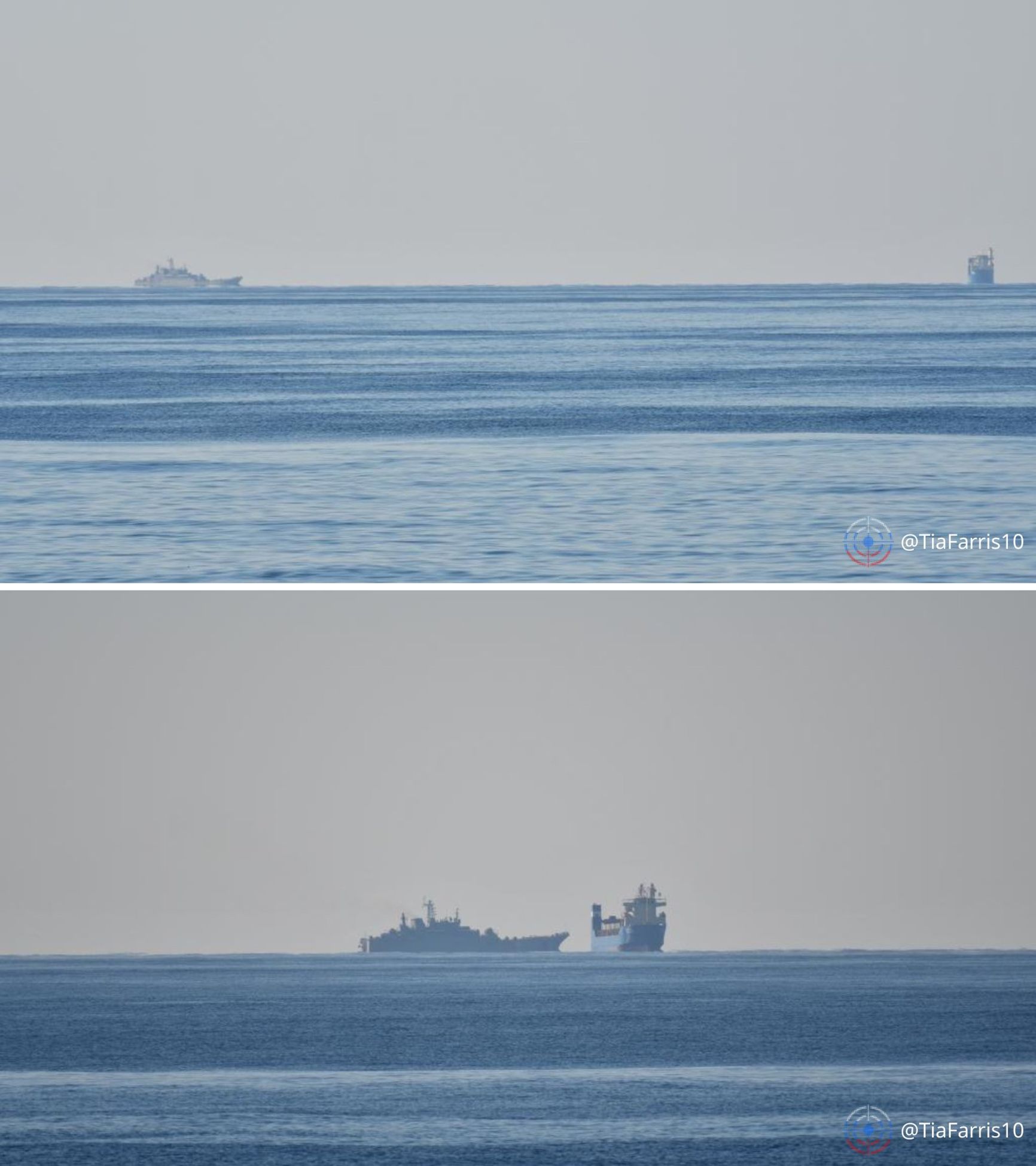По данным Russian Forces Spotter, ни одна страна не разрешила судну зайти в порт, поэтому его чинят прямо в море. Согласно навигационным картам, с которыми ознакомился The Insider, глубины в данной локации действительно позволяют встать на якорь в международных водах, судно стоит совсем немного не доходя до 12-мильной зоны территориальных вод Мальты.