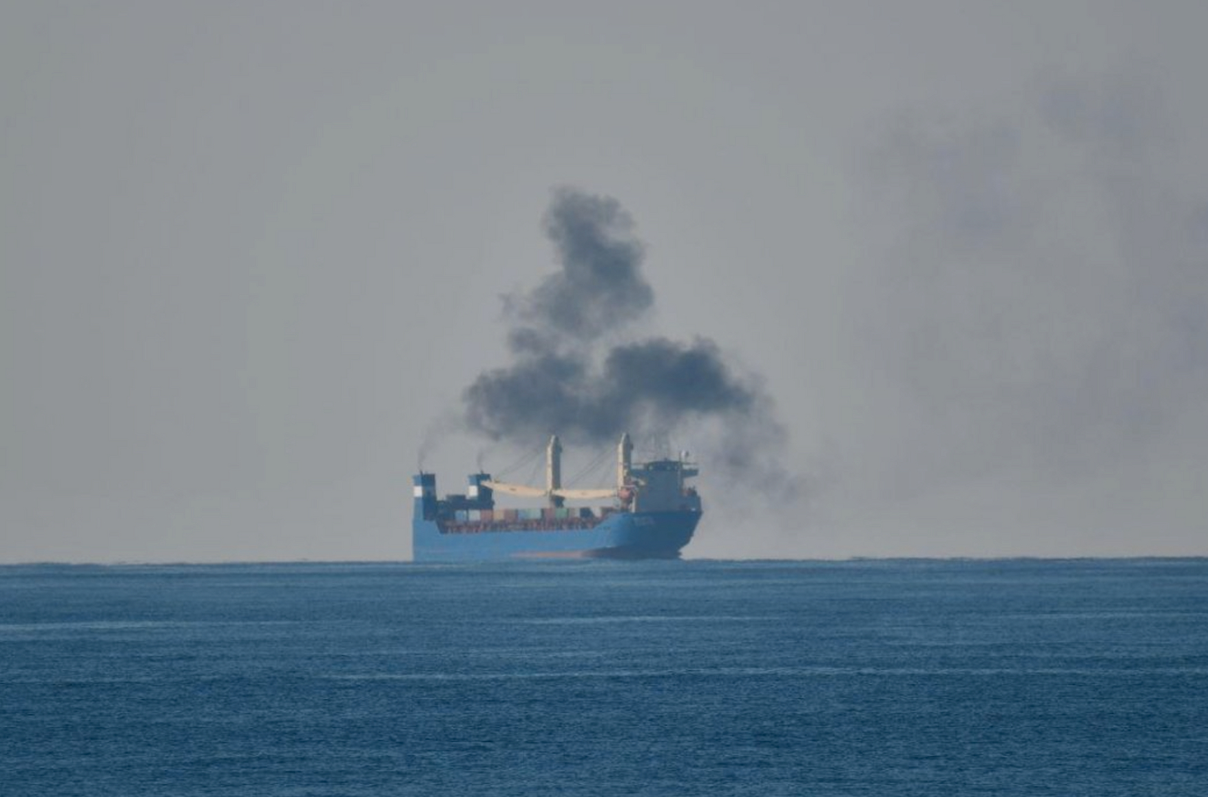 Сухогруз Sparta в дыму. Фото: OSINT-аналитик Russian Forces Spotter, опубликовано 31 января