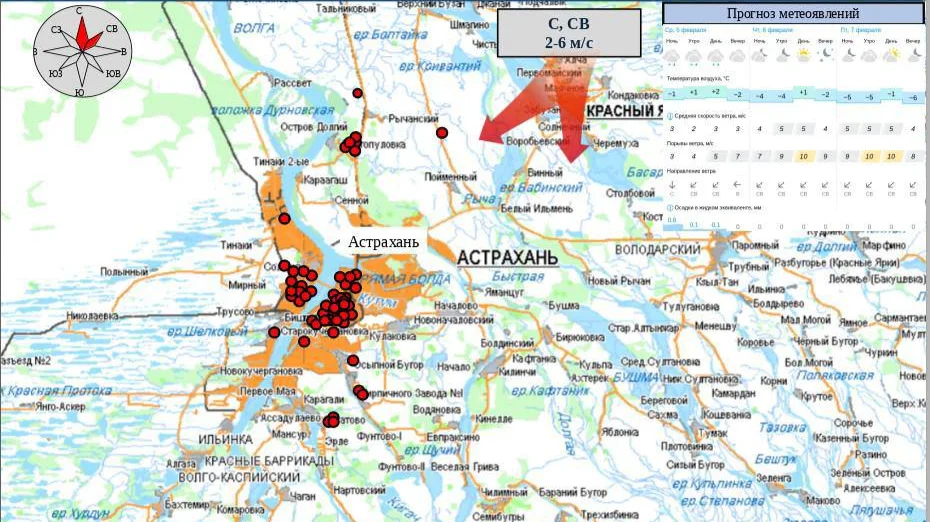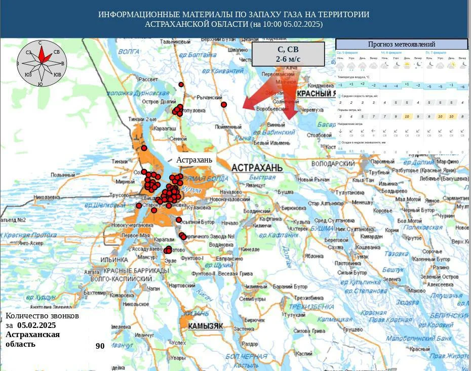 Он отметил, что облако имеет «специфический запах, который появляется после обработки (процесса одорирования)». В своем телеграм-канале он приложил карту обращений жителей Астрахани и села Растопуловка Приволжского района, которые жалуются на запах газа.