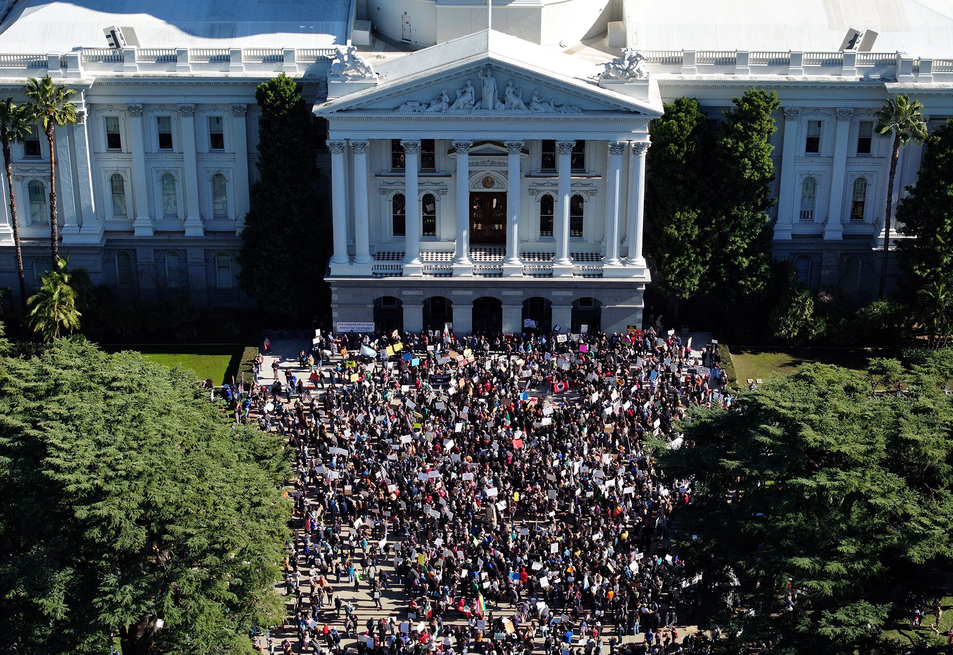 Justin Sullivan / Getty Images Демонстранты у капитолия штата Калифорния. Сакраменто, 5 февраля 2025 года