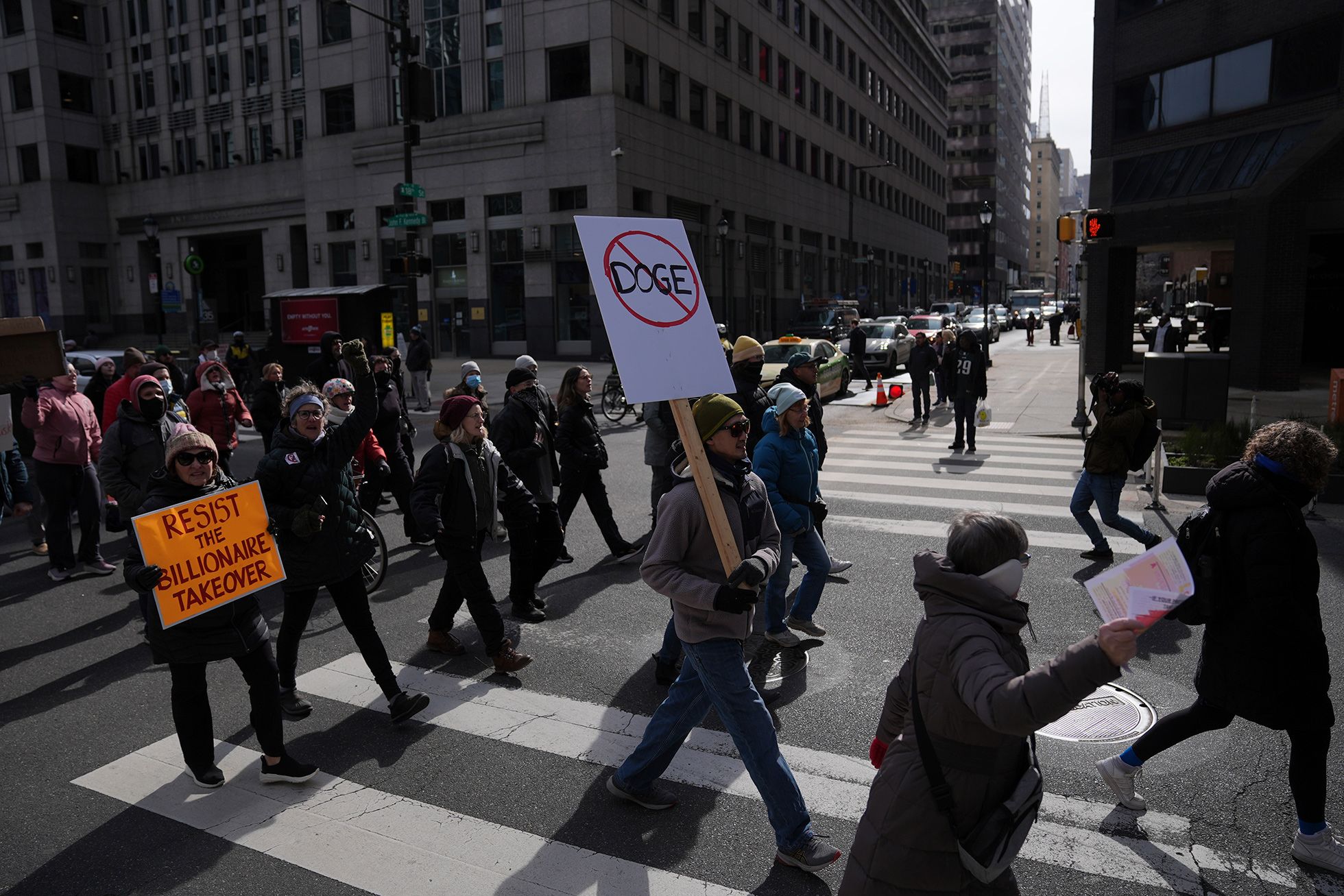 Matt Rourke / AP / Scanpix / LETA Демонстранты в Филадельфии, штат Пенсильвания. 5 февраля 2025 года