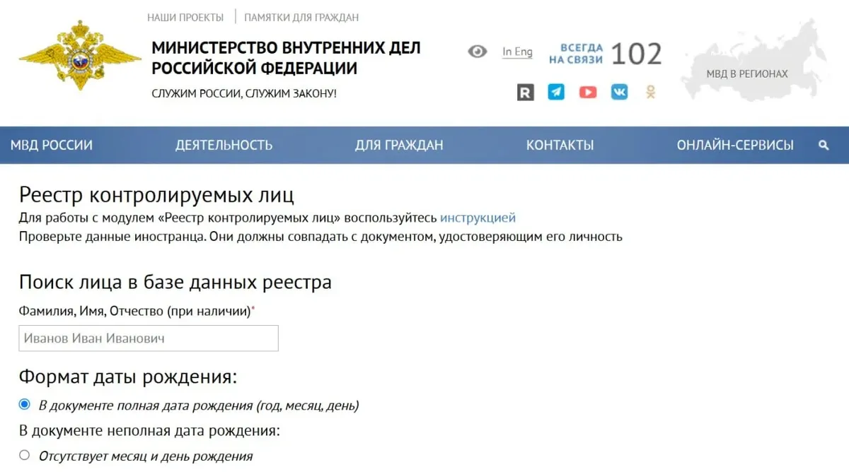 На сайте МВД РФ появился «реестр контролируемых лиц», в котором можно проверить данные иностранных граждан.