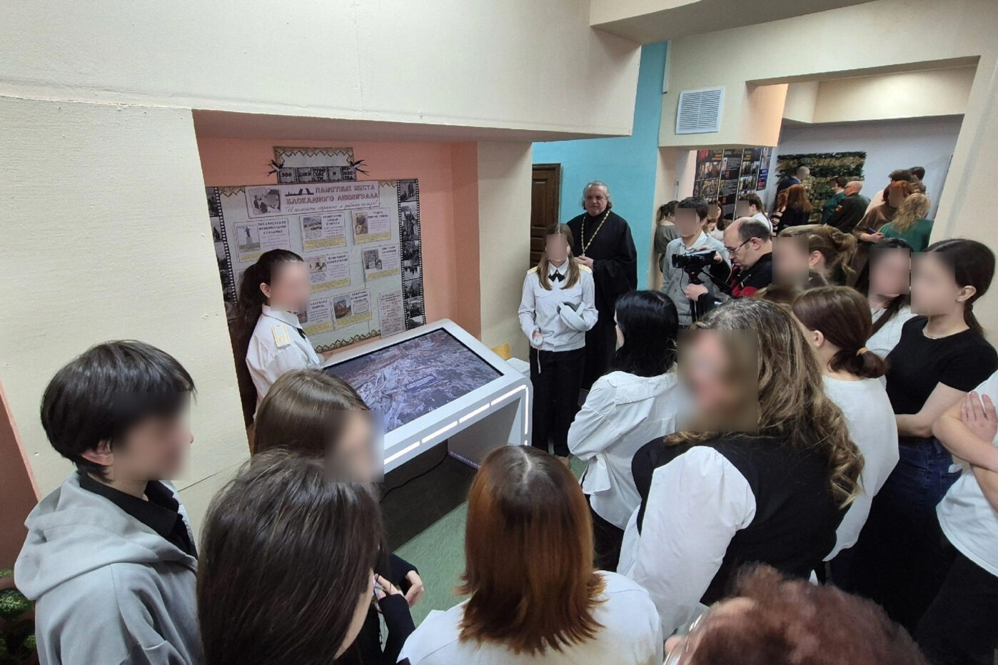 Учащиеся «Иванищевской средней общеобразовательной школы» Гусь — Хрустального района во время открытия экспозиции интерактивного «Музея СВО: Поколение Z», Владимирская область, 31 января 2024 года. Фото: группа ВКонтакте «Поисковики Владимирщины».