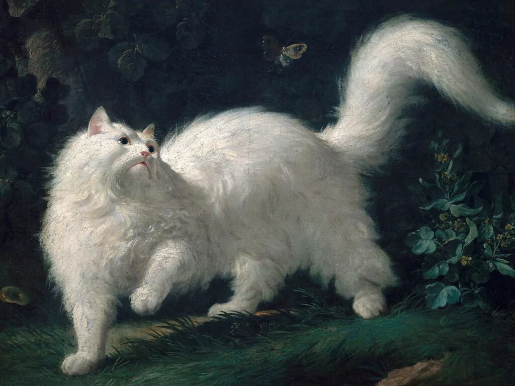 Кошки также появляются на картинах художников того времени. Среди них «Ангорская кошка, гоняющаяся за бабочкой» (1760 год) Жан-Жака Башелье, «Кошка и обезьяна» (1739 год) Жана Батиста Удри. Они становились героями живописи и в конце XIX века: например, их можно увидеть на полотнах «Молодая девушка» (1879 год) Пьера-Огюста Ренуара, «Девушка с кошкой» (1892 год) Берты Моризо, «Черный кот» (1896 год) Теофиля Стейнлена.