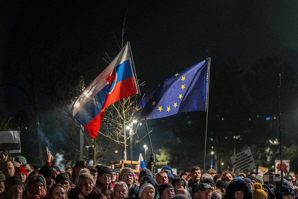 Причиной возмущения стала пророссийская политика действующего правительства: в конце прошлого года Фицо посетил Москву, где встретился с Владимиром Путиным, помимо этого, он регулярно критикует Владимира Зеленского и угрожает не поддержать продление санкций ЕС против России. Однако самым серьезным триггером для таких масштабных протестов стали слова соратника Фицо по правящей коалиции, который допустил выход Словакии из ЕС. Как показывают опросы, словацкое общество считает себя частью Европы и не хочет отдаляться от Брюсселя. Крупные протесты в Словакии уже приводили к отставке Роберта Фицо — это произошло в 2018 году из-за убийства журналиста Яна Куцяка, расследовавшего коррупцию во власти. Но в 2023 году партия Фицо смогла снова выиграть парламентские выборы. Он занял пост премьера в четвертый раз и запустил антидемократические реформы, которые вынудили словаков выйти на улицы еще в марте 2024 года. Однако после покушения, в результате которого Фицо серьезно пострадал, протестная активность в Словакии ненадолго утихла. О том, могут ли нынешние акции снова привести к отставке Фицо или хотя бы заставить его изменить свою политику, «Новая-Европа» поговорила со словацким политологом, приглашенным преподавателем Университета имени Коменского в Братиславе Микаэлой Гранчайовой.