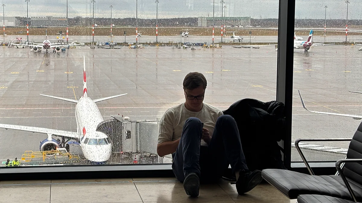Пассажир в аэропорту перед посадкой на авиарейс. Фото: Дмитрий Цыганов