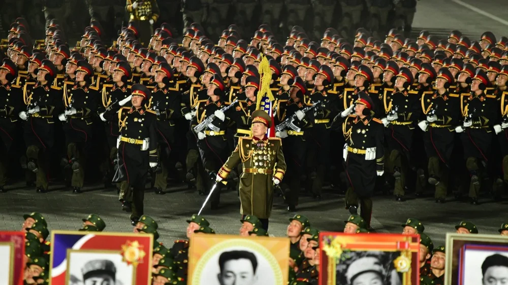 North Korean soldiers march during a military parade to mark the 75th anniversary of the founding of the Korean People's Army (KPA) in Pyongyang, North Korea, 08 February 2023. Photo: EPA-EFE/KCNA
