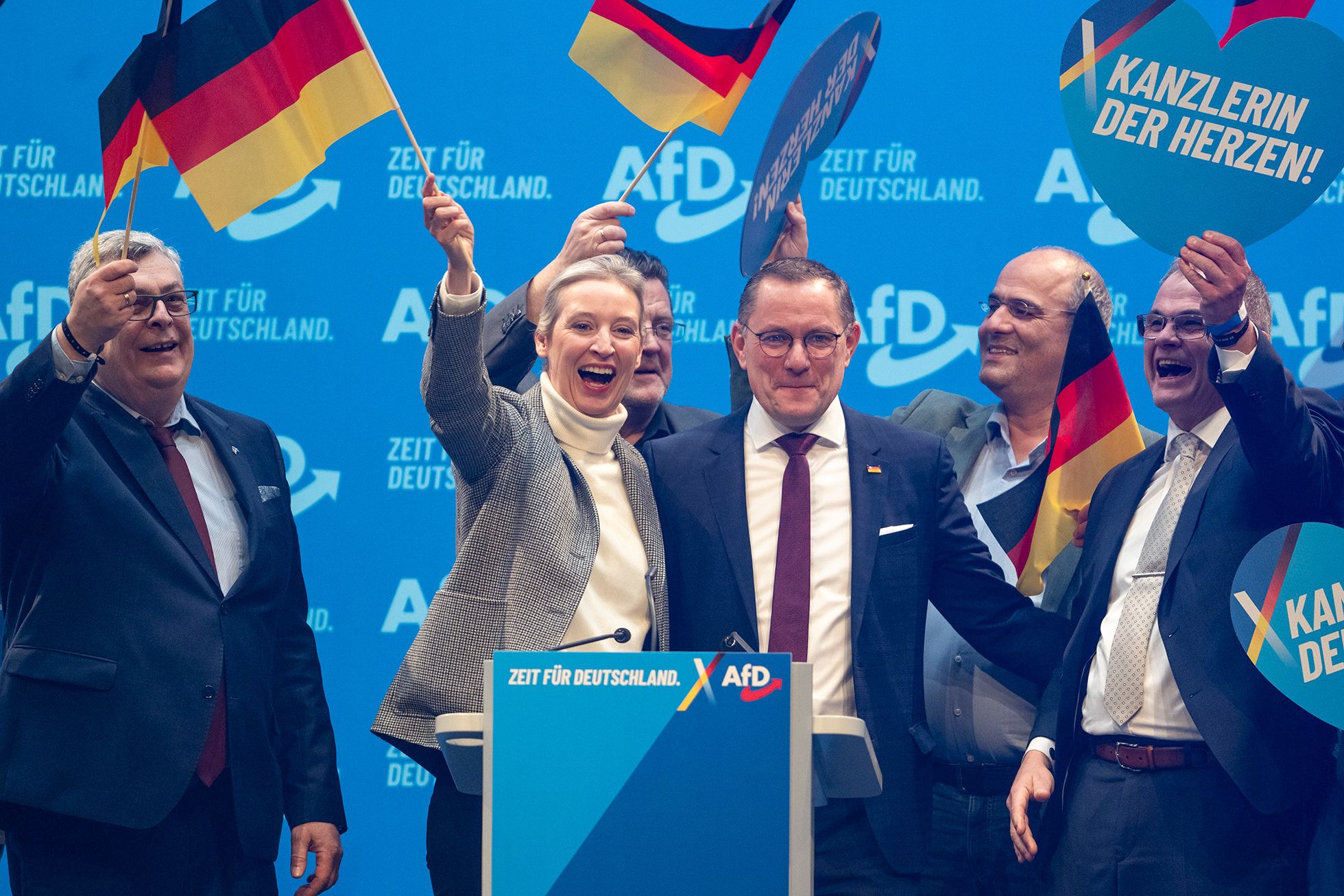 Под руководством Алисы Вайдель и Тино Хрупаллы, которые стали председателями партии в июне 2022 года, популярность АдГ выросла, особенно на территории бывшей ГДР. На местных выборах в сентябре 2024-го АдГ стала второй в Бранденбурге и Саксонии, набрав 31,5 и 34% соответственно, и победила в Тюрингии, где за нее отдали голоса 34,3% избирателей.