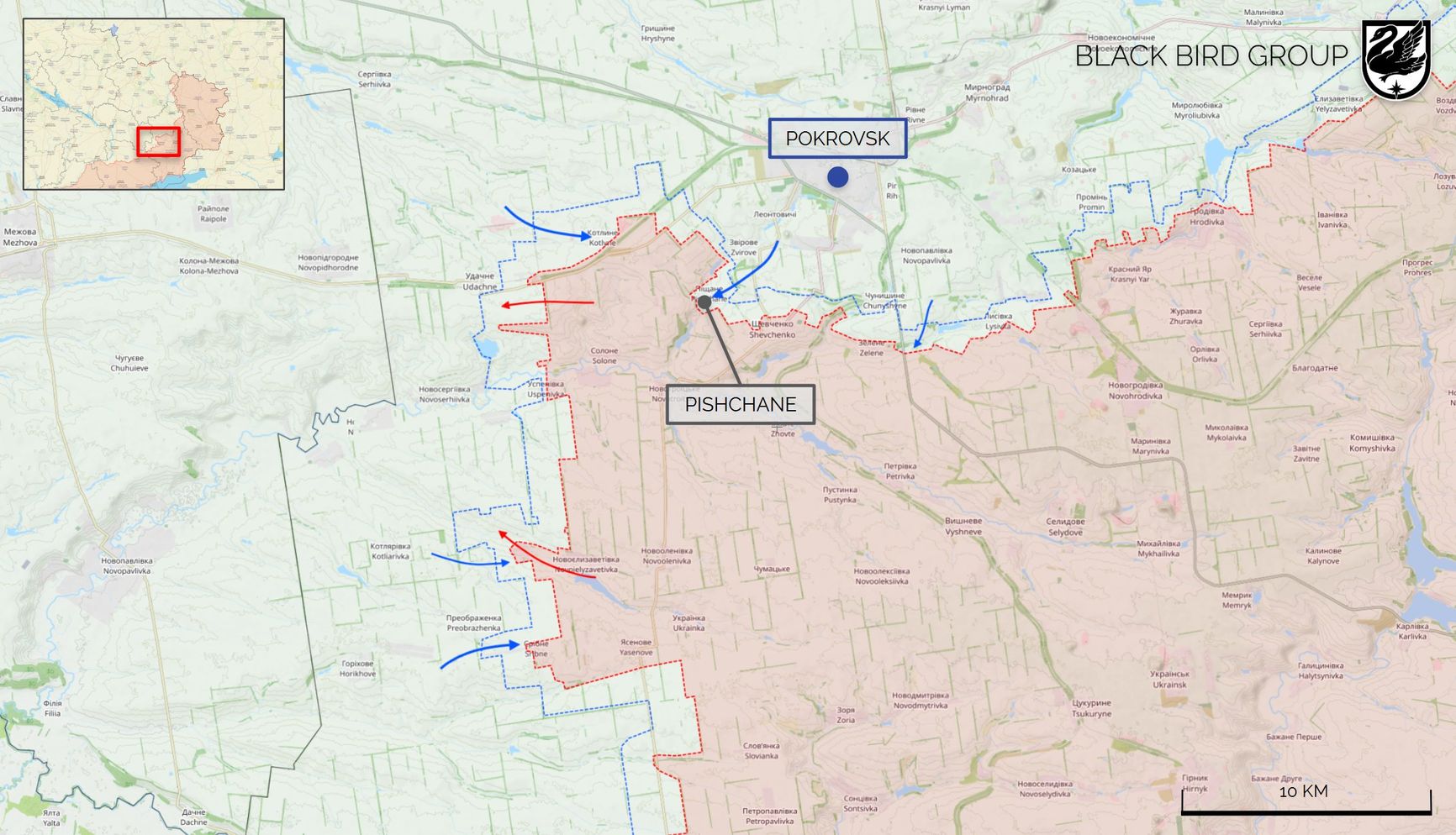 Украинский военный обозреватель Константин Машовец констатирует (1, 2, 3), что в последние дни ВС РФ смогли продвинуться на покровском направлении только в районе трассы на Константиновку. По его мнению, российскому командованию пока не удалось выполнить основную задачу охвата Покровска с запада. Не исключено, что следовало повременить с покровской наступательной операцией до окончательной ликвидации Кураховского операционного района, однако теперь это невозможно, поскольку остающиеся там украинские силы сковывают российские войска в арьергардных боях.