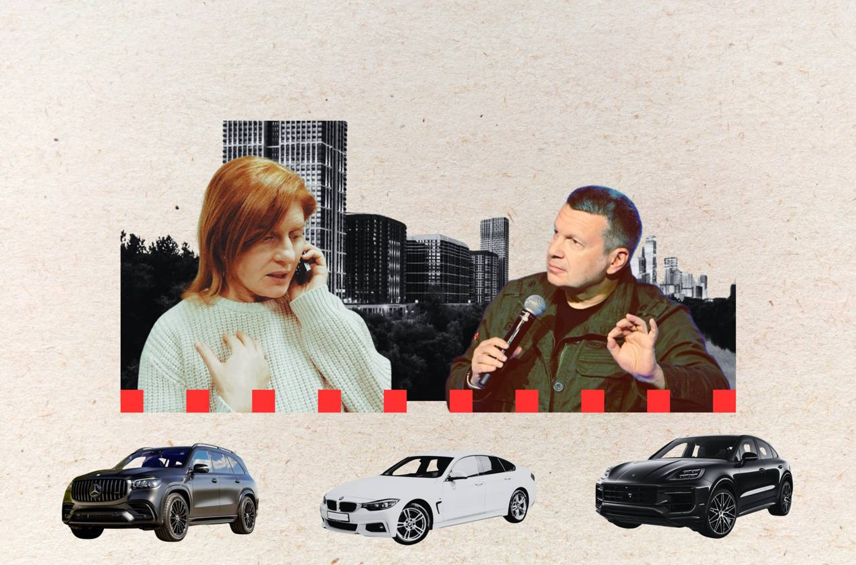 Two Porsches — used by Zhitnitskaya herself — are registered as owned by M-Production LLC and M-Production Media LLC. Personally, she owns a Mercedes-Benz GLS, BMW 420D, Porsche Cayenne, and Land Rover Discovery Sport.