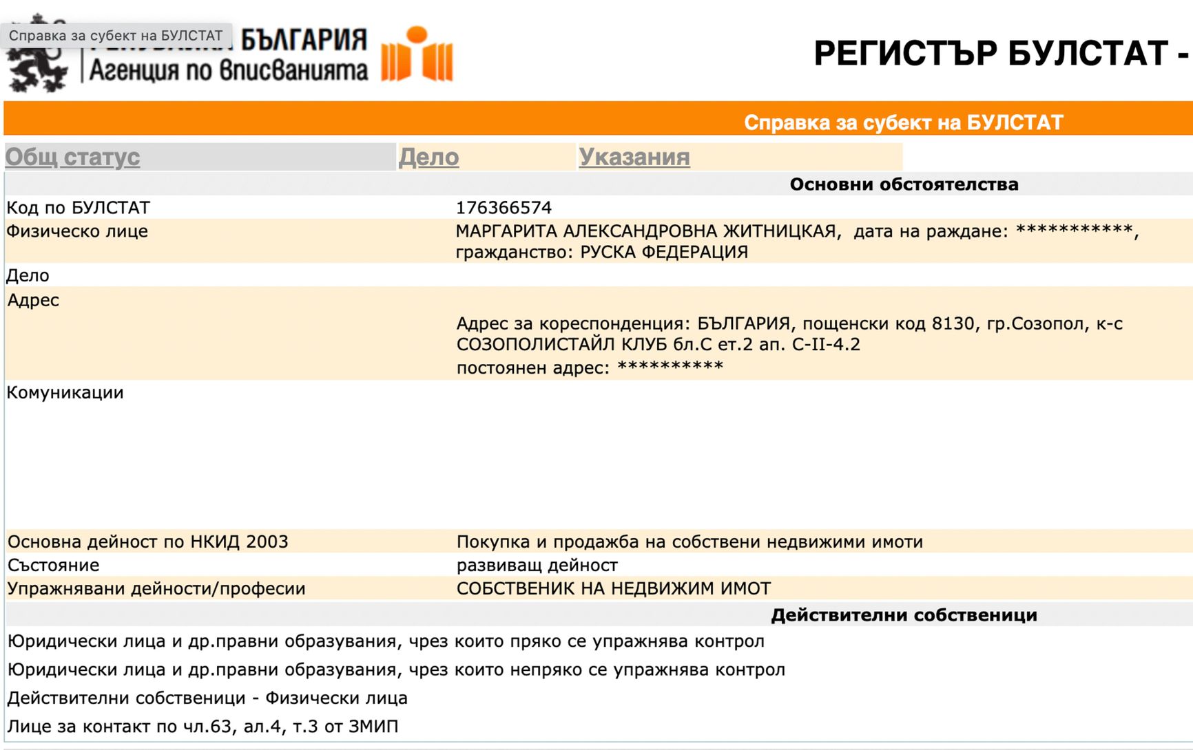 The Insider has also uncovered that Zhitnitskaya owns property in Bulgaria, a member of both the EU and NATO.