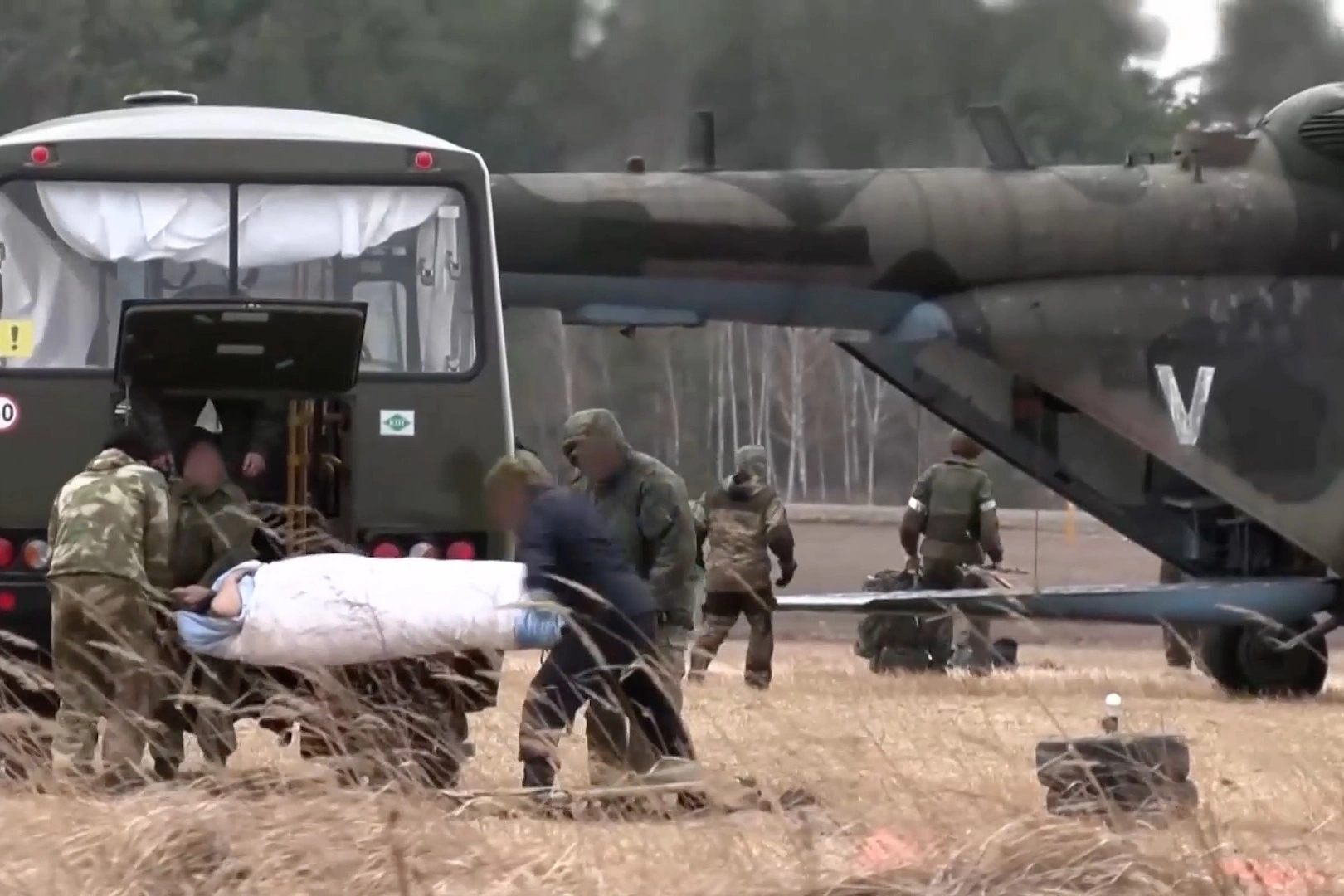 Фото: Вертолёт, отправляющий раненых солдат в полевой госпиталь в неустановленном месте на территории Украины. 28 марта 2022 года. Russia MOD/EYEPRESS via Reuters