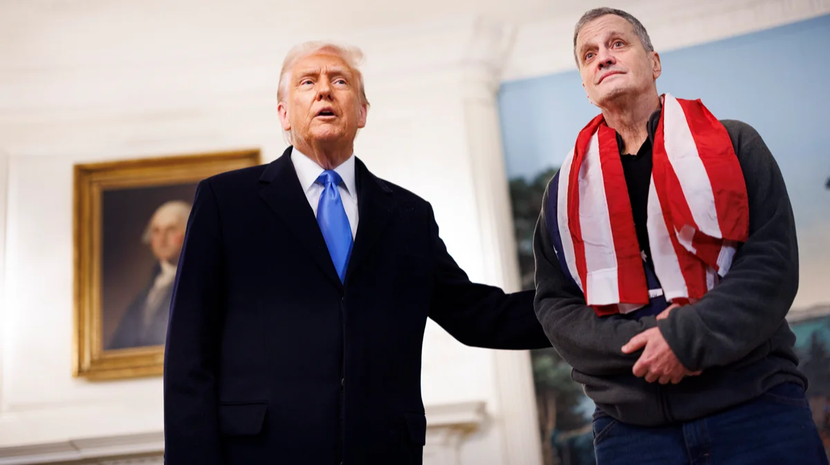 Президент США Дональд Трамп вместе с Марком Фогелем, освобождённым из российской тюрьмы, Вашингтон, округ Колумбия, США, 11 февраля 2025 года. Фото: Aaron Schwartz / EPA