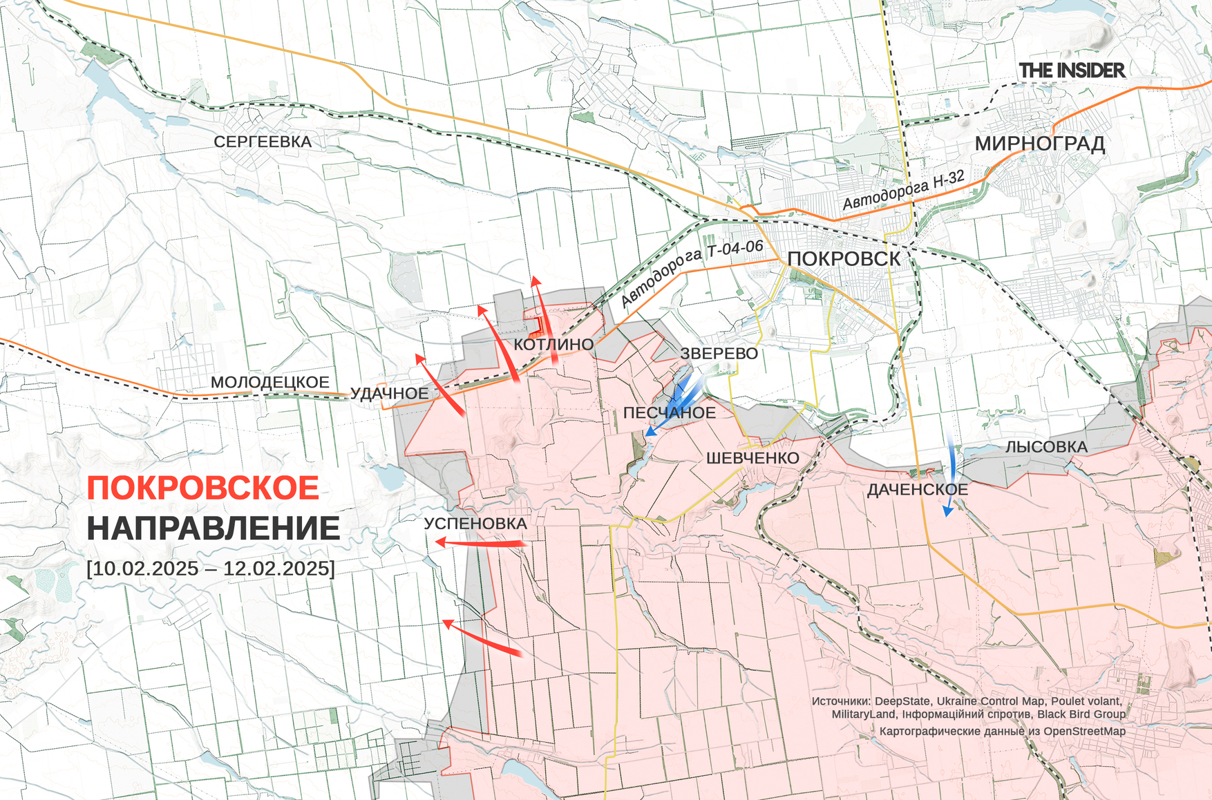Юрий Котенок признает успех ВСУ на северо-восточной окраине Песчаного и встречные бои под Котлином, в то же время, по его информации, российским военным удалось занять новые позиции в Удачном. Между тем в Telegram-канале украинского 425-го отдельного штурмового полка опубликовано видео зачистки Песчаного к юго-западу от Покровска.