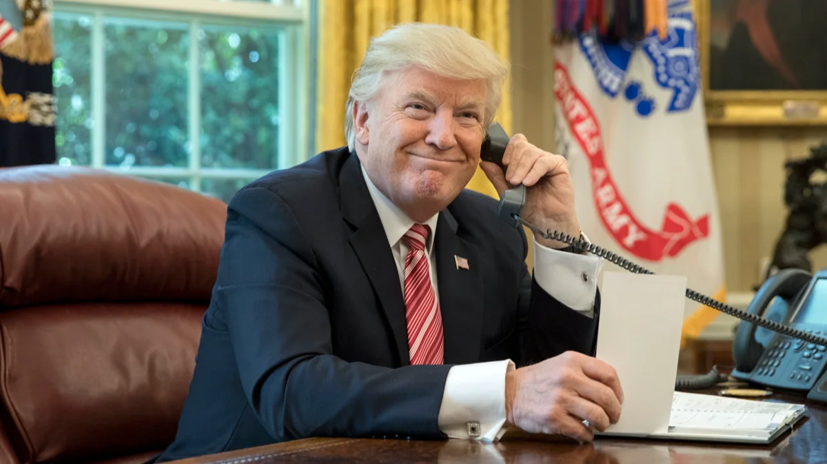 Президент США Дональд Трамп разговаривает по телефону в Овальном кабинете Белого дома, Вашингтон, округ Колумбия, США, 27 июня 2017 года. Фото: Michael Reynolds / EPA