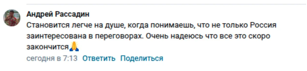 Из полученных данных следует, что боты оставили более 200 комментариев с одобрением переговоров. Так, в одном из них написано: «Круто, что в итоге все так идет и они смогли даже что-то обсудить». Также боты делают акцент на том, что «РФ всегда на стороне переговоров», в отличие от Запада и Украины.