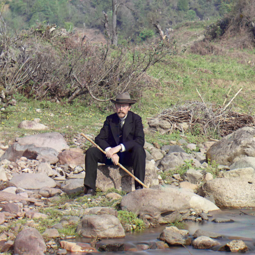 Фрагмент автопортрета Прокудина-Горского на реке Королисцкали, недалеко от Батуми. 1912 год. Фото: Библиотека Конгресса США