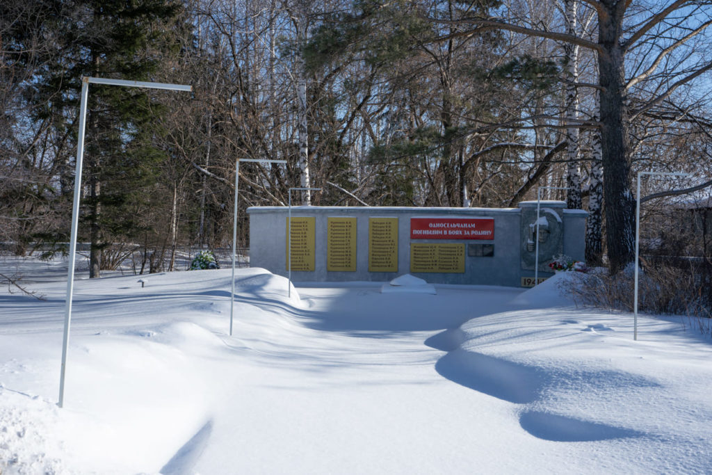 В центре села — серое здание администрации поселения, почта, супермаркет, магазины. Рядом с администрацией — памятник. На серой гранитной плите — барельеф с мужским лицом, четыре золотистые таблички с фамилиями и надпись «Односельчанам, погибшим в боях за Родину». К плите ведёт занесённая снегом дорожка, вдоль которой стоят фонари.